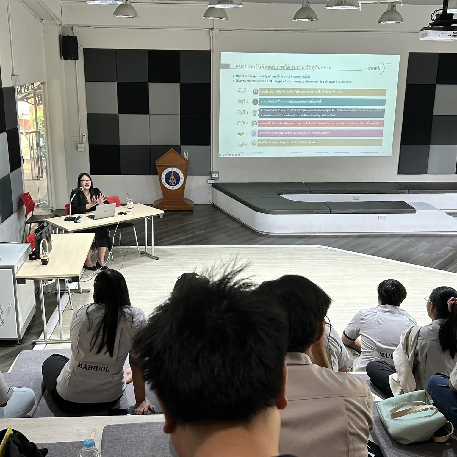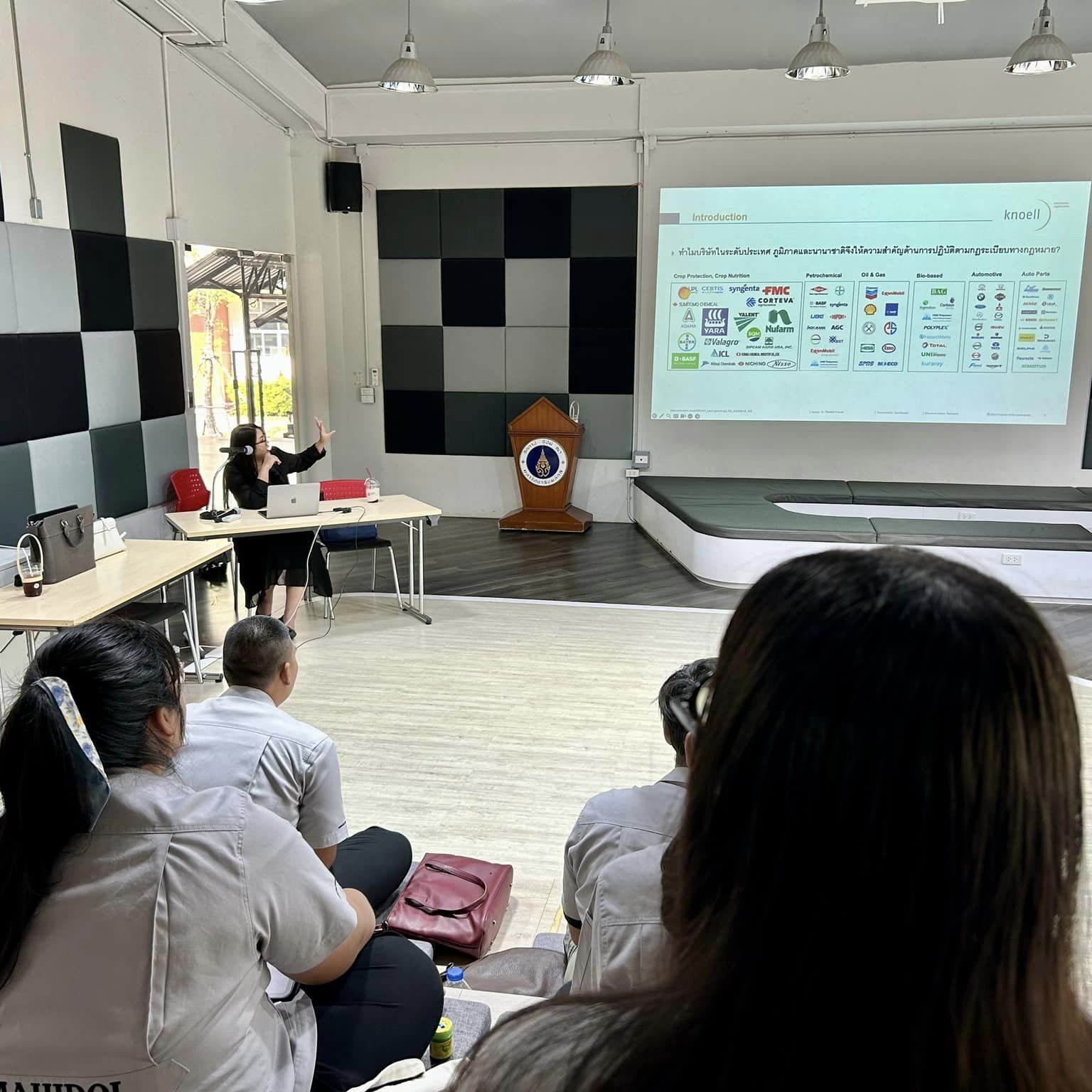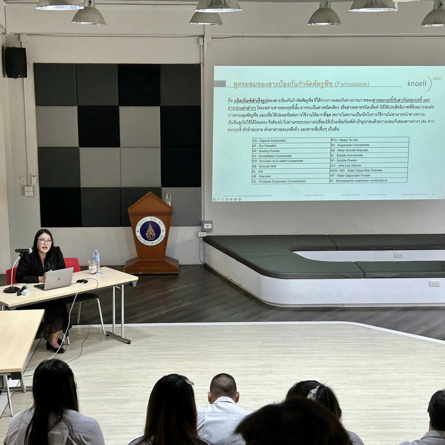 On April 9, 2024, the Agricultural Science program invited Dr. Piyatida Pukclai, Asian-Pacific Business Development and Regulatory Policy Director from Dr. Knoell Consult Thai Co., Ltd., a private sector expert in agricultural law, to lecture on “Regulations of Crop Protection Chemicals, Fertilizers, and Related Chemicals,” which is part of the course KAAG385 Regulation and Laws in Agriculture System. In addition to students, there were other private sector personnel interested in attending.