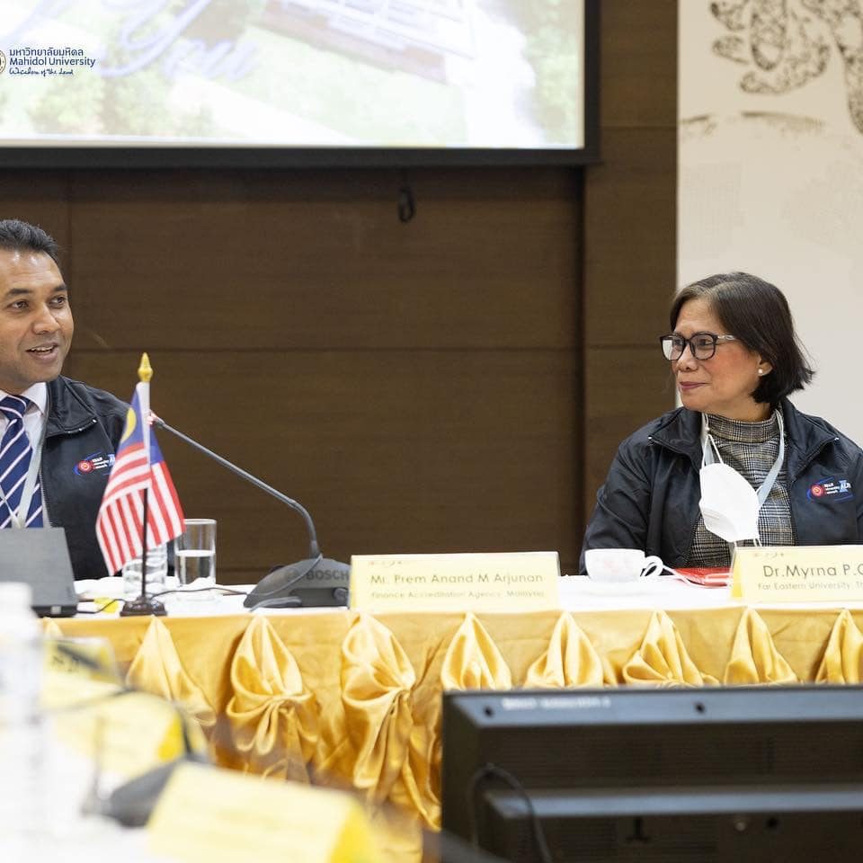 On November 14, 2022, Asst. Prof. Dr. Thatchavee Leelawat, Vice President for Information Technology and Kanchanaburi Campus, along with the MUKA administrative team and faculty members of the Department of Environmental Engineering and Disaster Management, welcomed Mr. Prem Anand M. Arjunan and Dr. Myrna P. Quinto from the AUN-QA Quality Assessment Committee from the Network Secretariat Office ASEAN University (ASEAN University Network; AUN) and assessed the quality of education according to the AUN-QA criteria at the ASEAN level between November 14–16, 2022, at the Nilkan Conference Room, Lecture Hall at Mahidol University Kanchanaburi Campus.