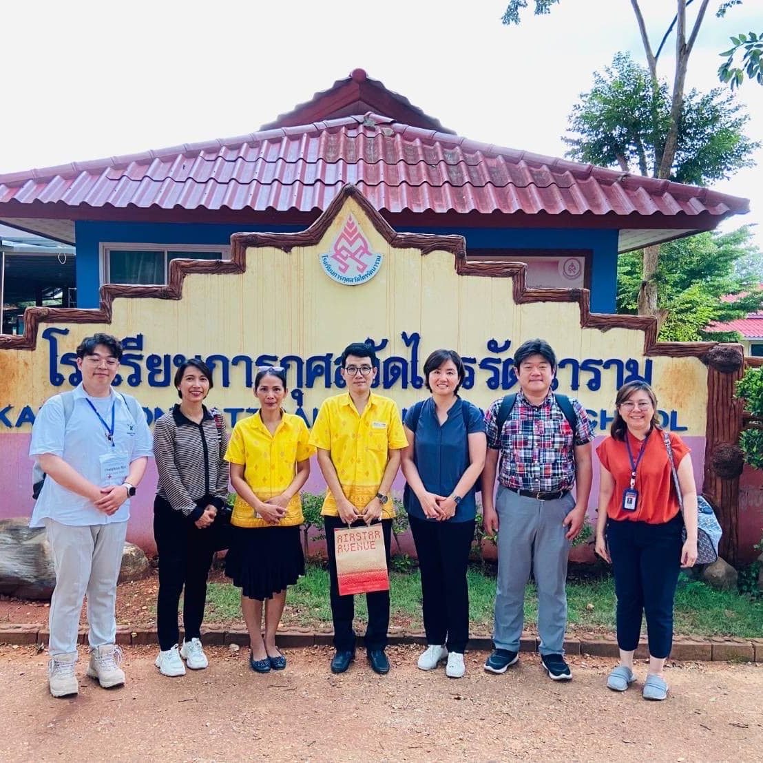 On July 10, 2023, Assist. Prof. Dr. Nongnuch Sungayuth, Assistant Vice President of Kanchanaburi Campus for Social and Community Relations, and Dr. Chutamas Sukonthapatipak, Head of the STEAM Learning Management Development Project, along with faculty members and graduate students from the Department of Earth Science Education at Korea National University of Education (KNUE), including Prof. Jungjoo Sohn, Prof. Taejin Choi, and Mr. Changhyun Ryu, visited the Director and teachers of Ban Wang Sing School and the teachers of Wat Trairatnaram School. The purpose of the visit was to discuss the development of science and technology teaching practices among the teachers in the schools, in collaboration between Mahidol University, Kanchanaburi Campus (MUKA), and Korea National University of Education (KNUE), Republic of Korea, as part of the UNESCO-UNITWIN project.