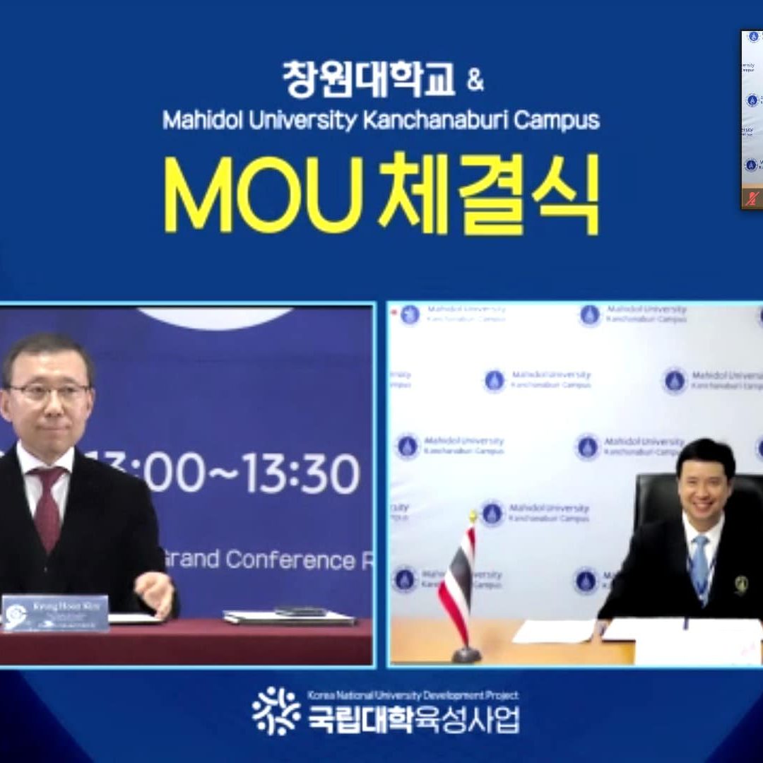 Collaboration between Mahidol University Kanchanaburi Campus (MUKA) and Changwon National University (CWNU) launched by the virtual signing ceremony of the MoU