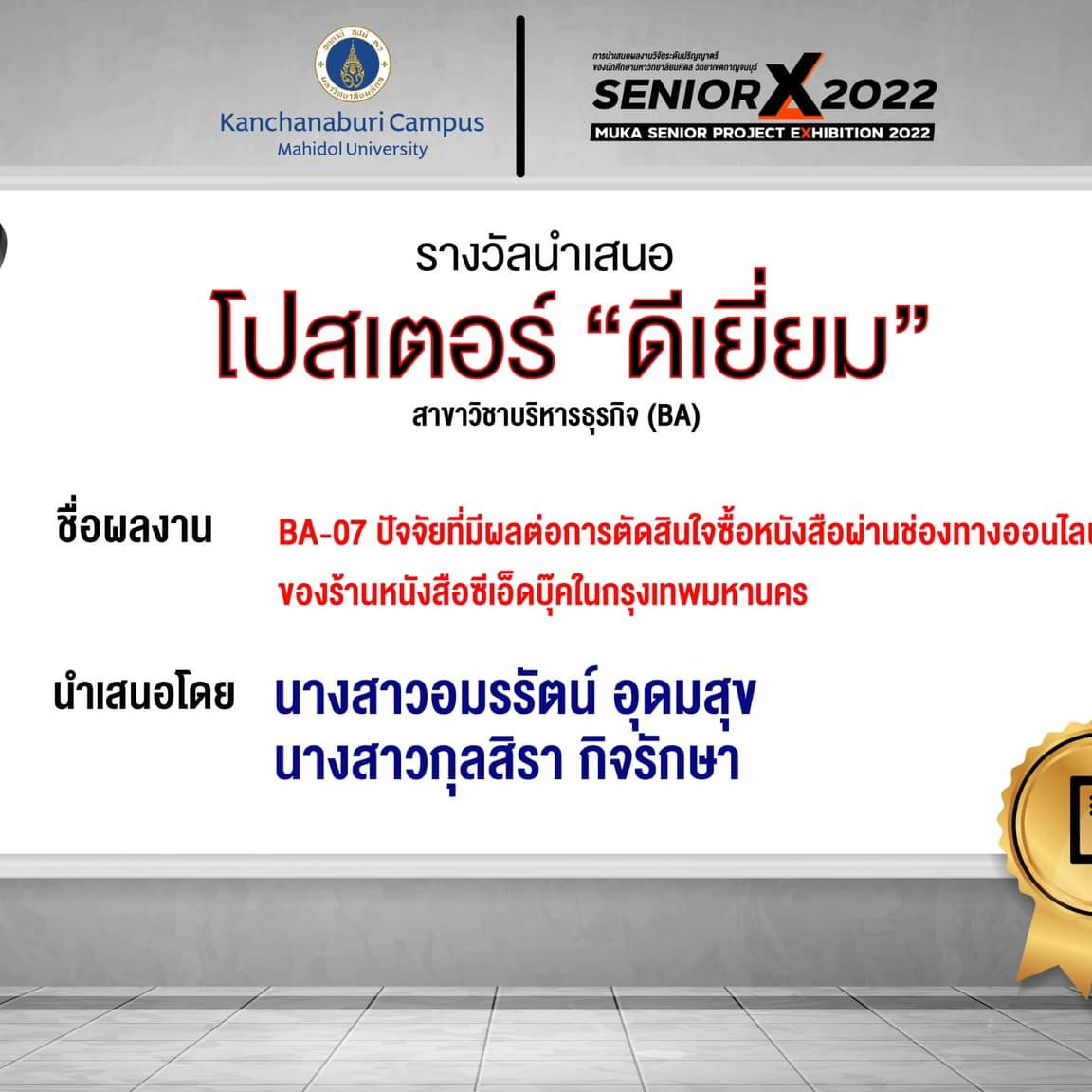 BA07 Factors Affecting Online Purchase Decision At SE-ED Bookstore In Bangkok By Miss.Amornrat Udomsuk and Miss.Kulsira kitruksa