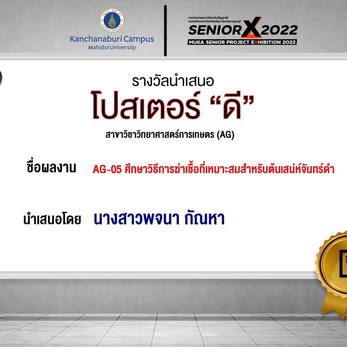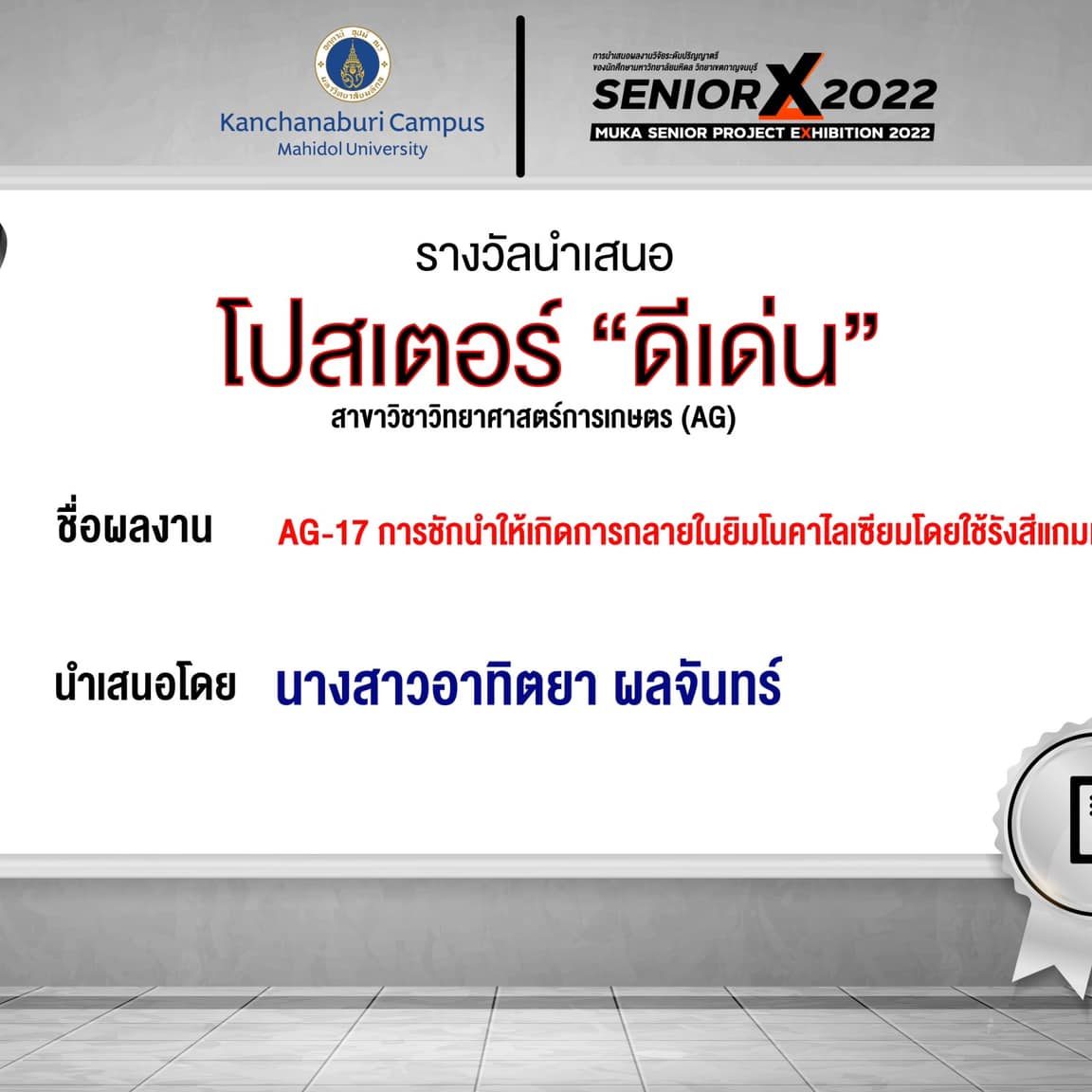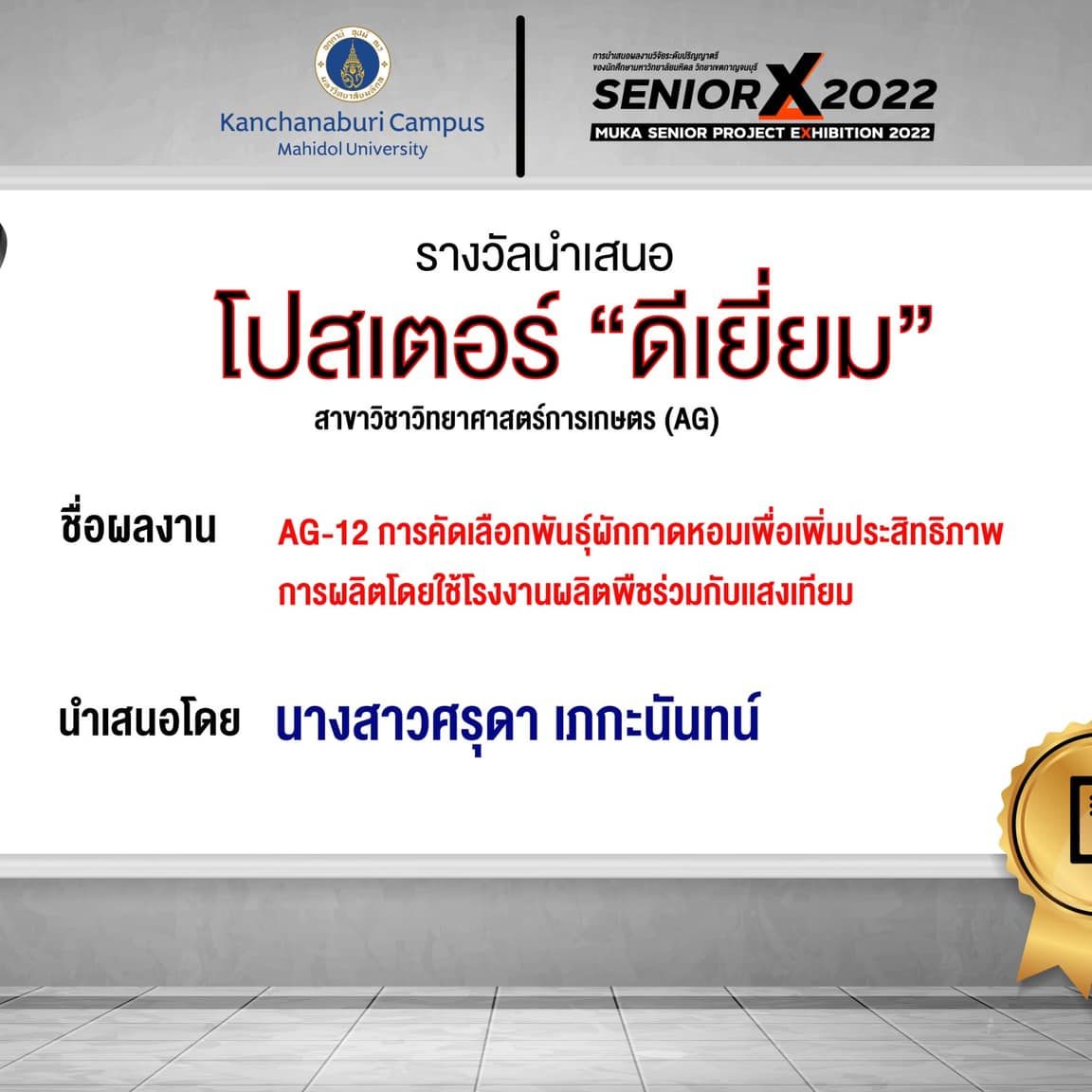 AG12 Varietal selection of lettuce for strengthening the production using Plant Factory with Artificial Lighting By Miss.Saruda Pakanan