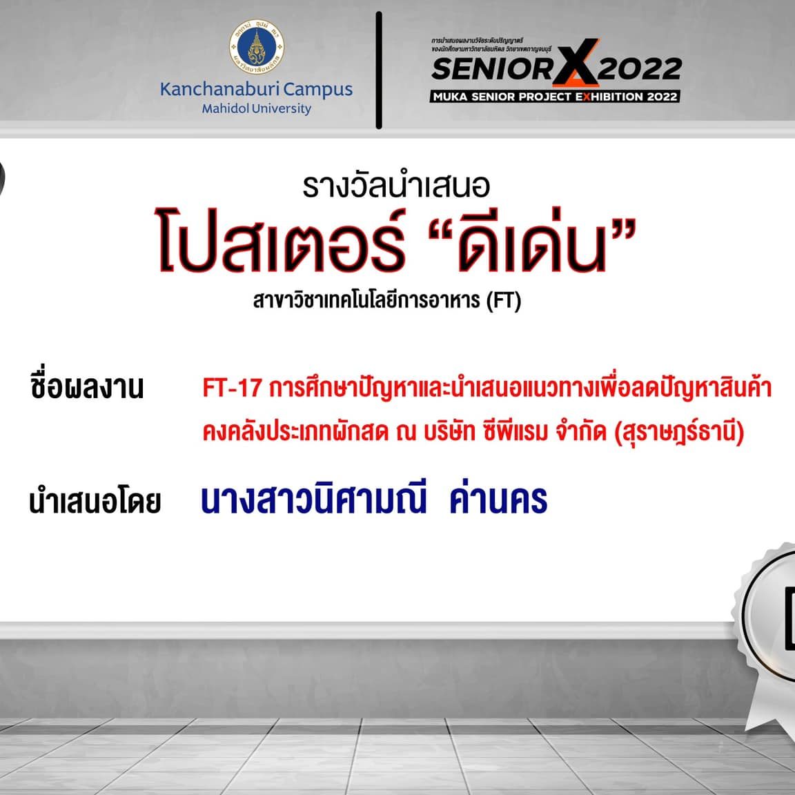 FT17 Development the practical process for reduction of fresh vegetable inventory issues at CPRAM company limited. (Surat Thani) By Miss.Nisamanee Kanakorn