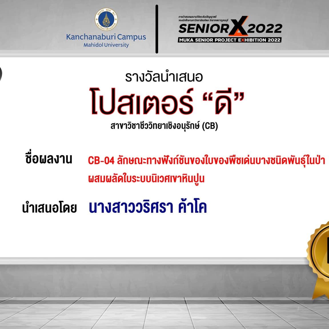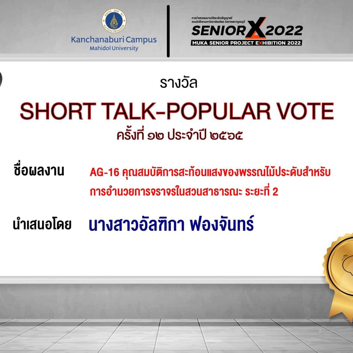 Short talk popular vote: AG16 Reflecting properties of ornamental plants for directing traffic in public park, phase 2. By Miss.Aultika Fongchan