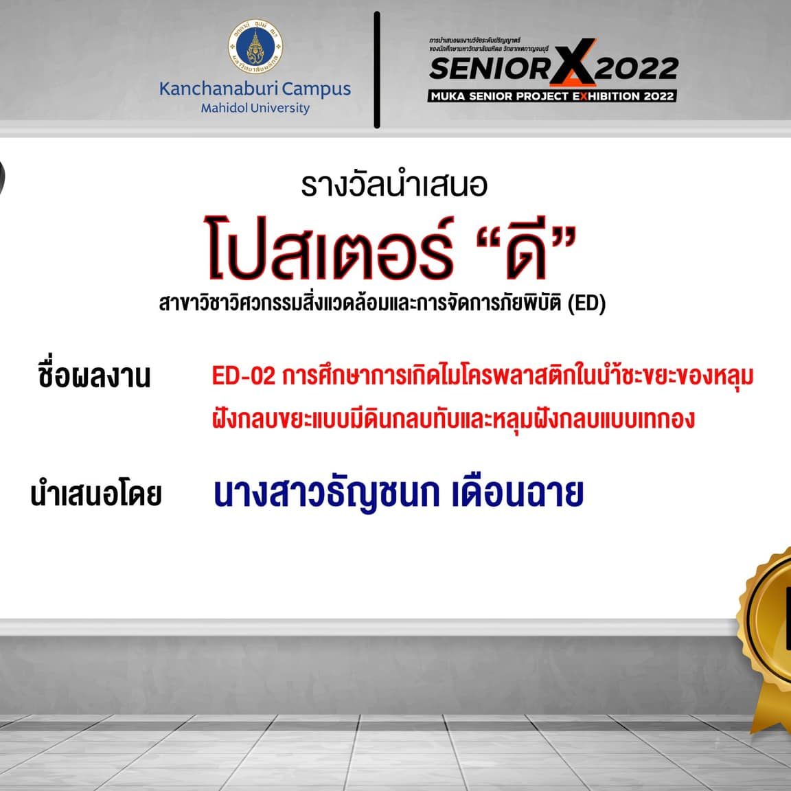 ED02 The study of microplastic generation in landfill leachate from Engineered landfill and open dump By Miss.Thanchanok Dernchai