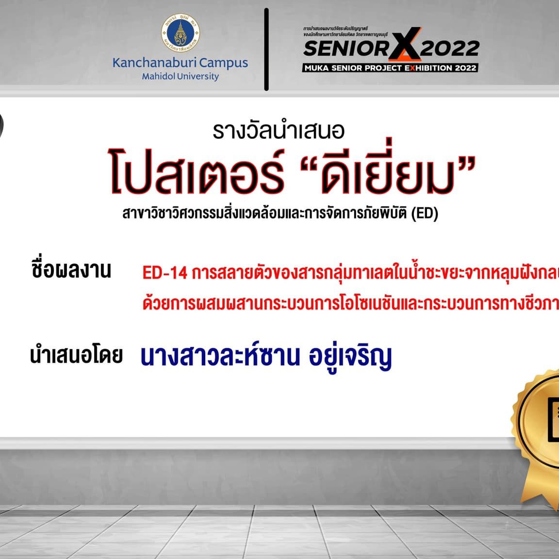 ED14 Degradation of phthalates in landfill leachate using a hybrid ozonation-biological process By Miss.Lasaan Yhoochaaroen