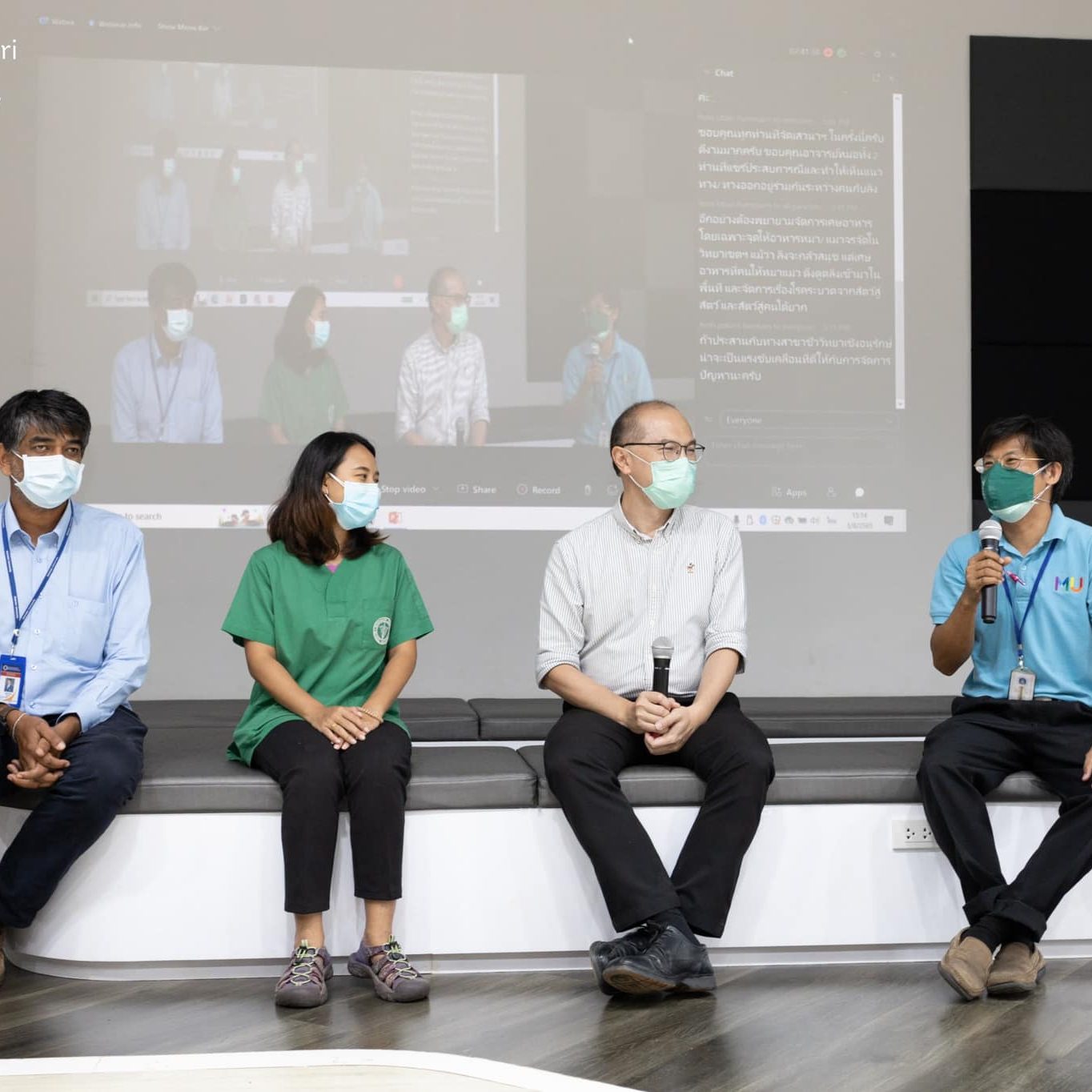 This discussion aimed to jointly deal with problems between humans and monkeys in the Kanchanaburi campus area, including long-term solutions to the problems, and took place at MaSHaRES Co-Working Space, Lecture Building, Mahidol University Kanchanaburi Campus.