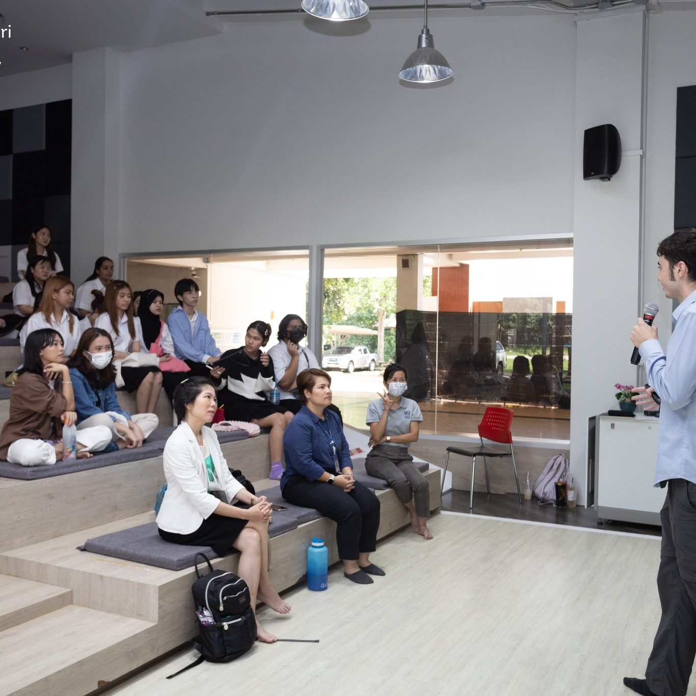 On November 8, 2023, Mr. Hal Agar, an exchange student from the University of York, England, along with members of the International Relation and Corporate Communication Division (IRCC), Kanchanaburi Campus, Mahidol University (MUKA), conducted the England – Thai Culture Exchange Program in the title “Experience at University of York.” This activity aims to create international knowledge and cultural exchange among students and staff of MUKA. Ultimately, the event was situated at Co-Working space, lecture hall, MUKA.