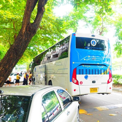 It is essential that you book your seat prior to travelling. Please contact our supporting staff or book your seat via “e-Seat” before you are required to travel between Salaya and Kanchanaburi campuses and they will assist you with arranging transport.
