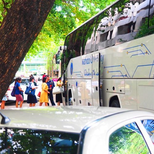 Campus shuttle service can take you between Salaya and Kanchanaburi campuses. Our attempts have been made to partially support our students who want to travel to Kanchanaburi campus or Salaya campus. The fare for single trip is 100 baht per person.