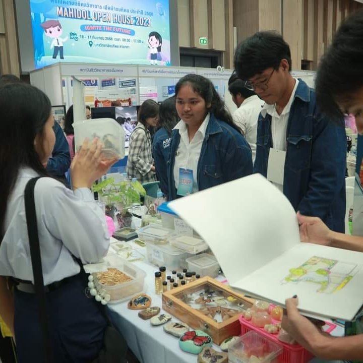 On September 16-17, 2023, students from all years of Agricultural Science program participated in booth exhibitions at the “Mahidol Open House” event at Mahidol University’s Salaya Campus. The purpose was to promote the program and invite high school students to understand about the teaching and learning methods of the program under the theme “Agricultural Science, One-Stop for All Agricultural Systems,” as well as career opportunities in various fields after graduation.