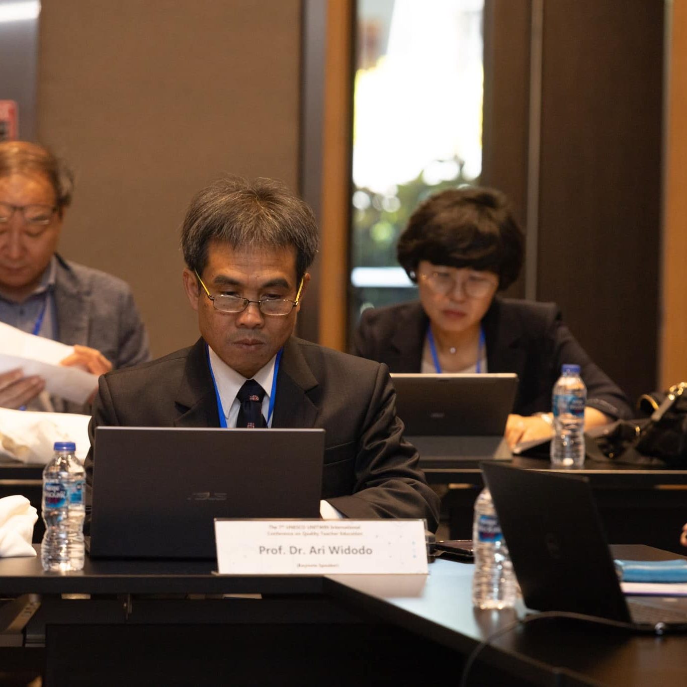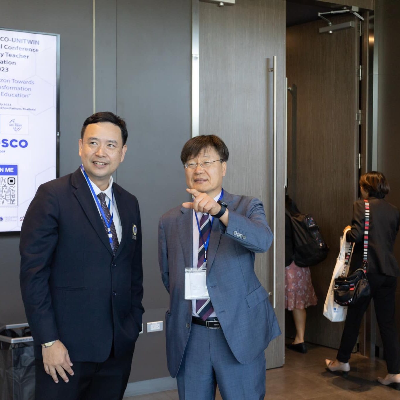 On July 6, 2023, Asst. Prof. Thatchavee Leelawat, Vice President for Information Technology and Kanchanaburi Campus, delivered a welcoming remark to greet Prof. Dr. Jongwoo Kim, President of Korea National University of Education, scholars, and professors from various educational institutions across the UNESCO UNITWIN network member countries, including Thailand, Laos, Vietnam, the Philippines, Indonesia, and the Republic of Korea.