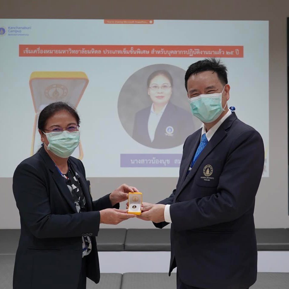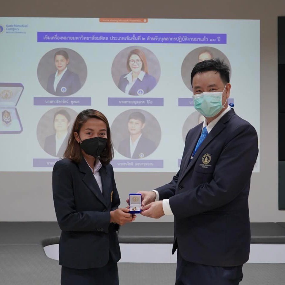 On this occasion, Asst.Prof.Dr. Thatchavee Leelawat also wished every staff member good luck and success on the Thai New Year (Songkran Day) and congratulated the awarded personnel for broadcasting live through the online system from the Co-working Space, Lecture building. Mahidol University, Kanchanaburi Campus.
