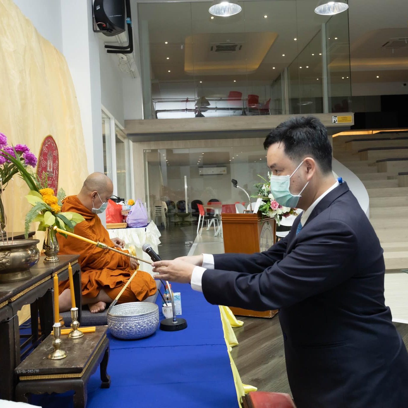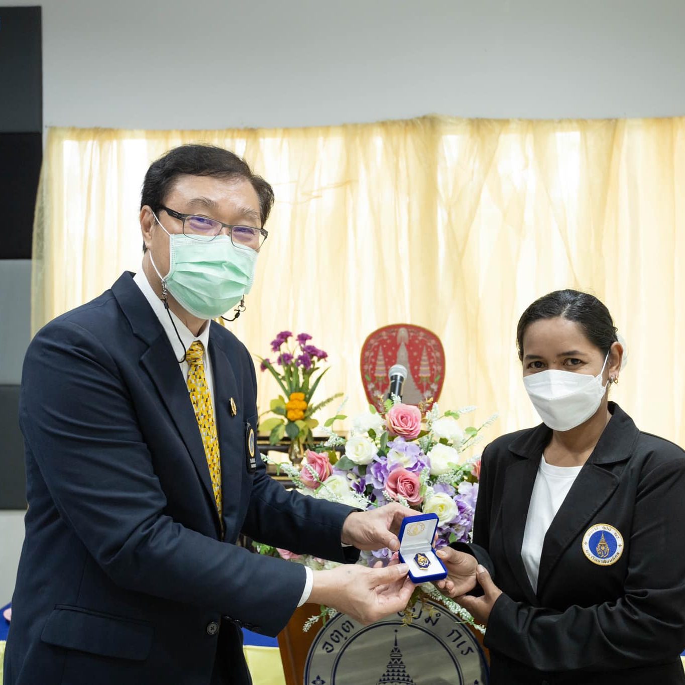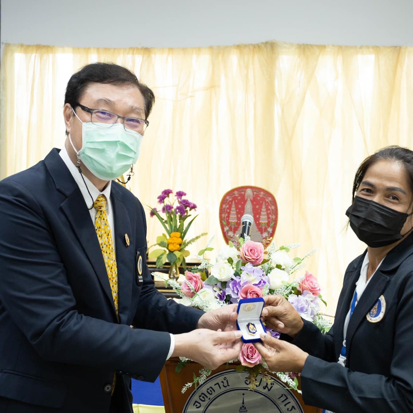 On April 18, 2022, Asst.Prof.Dr. Thatchavee Leelawat, Vice President for Information Technology and Kanchanaburi Campus, presided over and participated along with the administration team in the event “24th Anniversary of Mahidol University Kanchanaburi Campus Foundation Day”. The activities consisted of Buddhist ceremonies and badge award ceremonies for the outstanding MUKA personnel.
