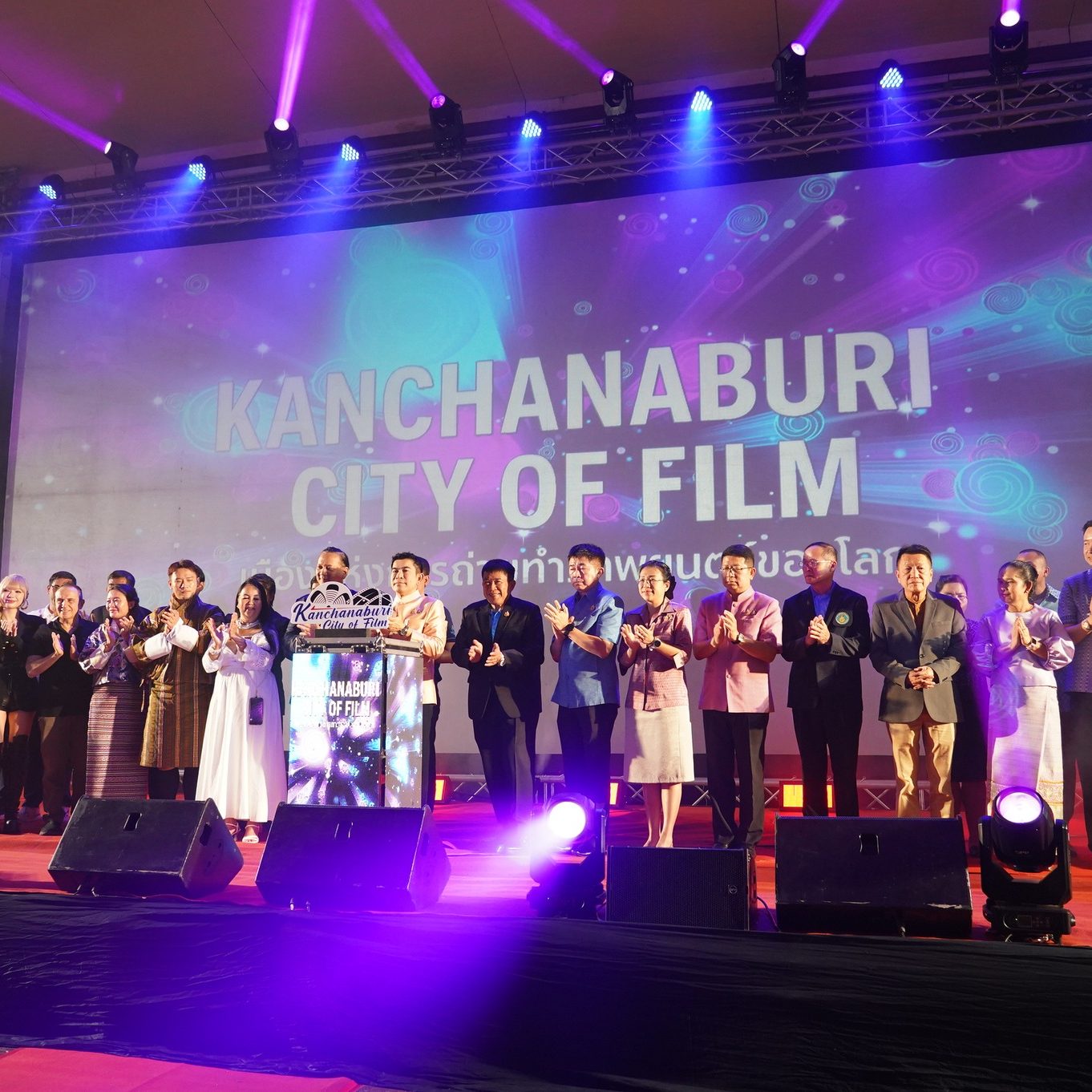 On June 20, 2025, Asst. Prof. Dr. Thatchavee Leelawat, Vice President for Kanchanaburi Campus, together with Asst. Prof. Dr. Amnat Jareret , Assistant to the Vice President for Kanchanaburi Campus, and staff members, attended the opening ceremony and set up an exhibition booth at the “Kanchanaburi City of Film 2025 – Toward Becoming a UNESCO Creative City of Film” event.The opening ceremony was presided over by Mr. Atisak Inthra, Governor of Kanchanaburi Province.The event, held from June 20–22, 2025, was organized by the Kanchanaburi Provincial Cultural Office in collaboration with government and private sector partners. It aims to promote tourism and economic development in Kanchanaburi and to advance the province’s goal of becoming a UNESCO Creative City in the field of film.