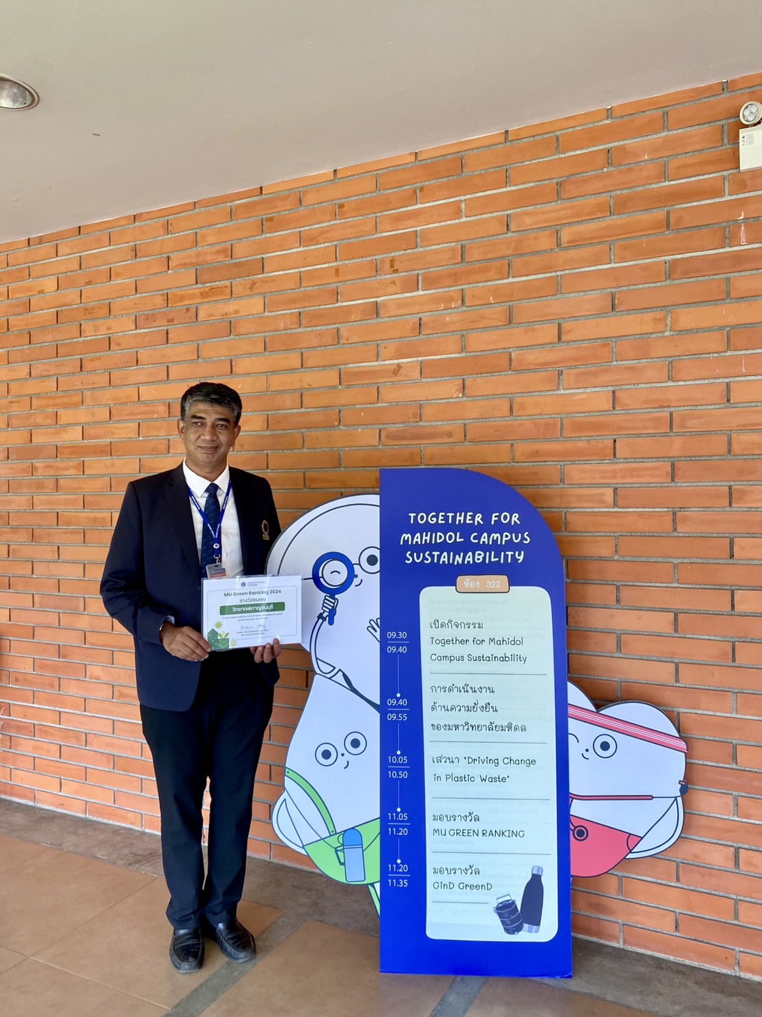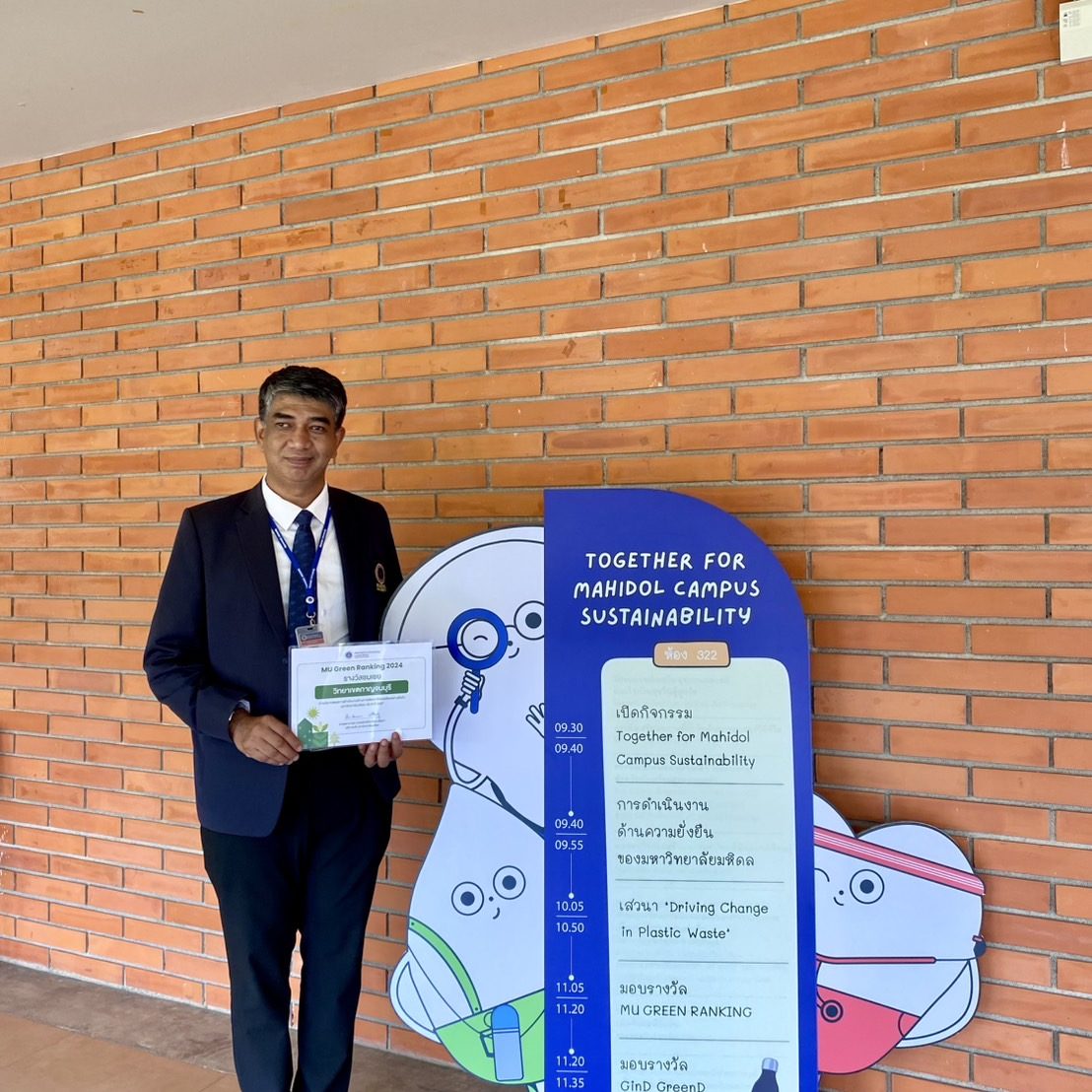 On June 6, 2025, Mr. Krid Khaobang, Assistant to the Vice President for Kanchanaburi Campus, received an Honorable Mention award in the MU Green Ranking 2024 and participated in the “Together for Mahidol Campus Sustainability” activity held in celebration of World Environment Day.