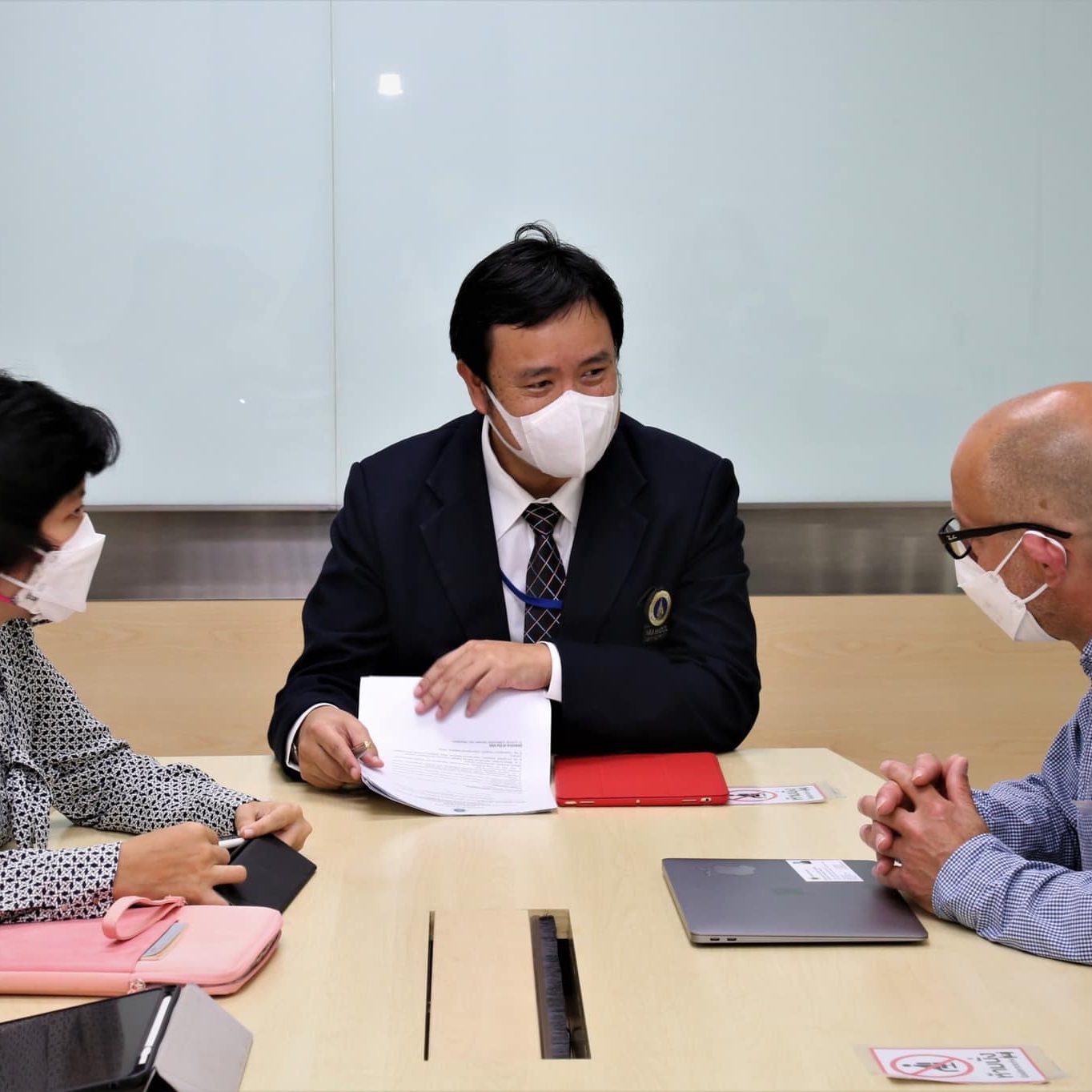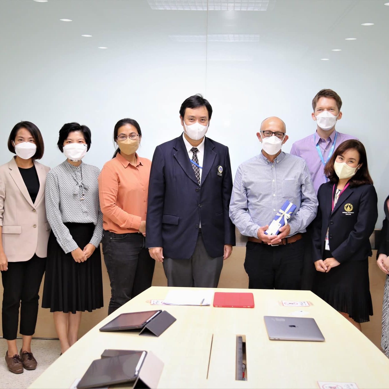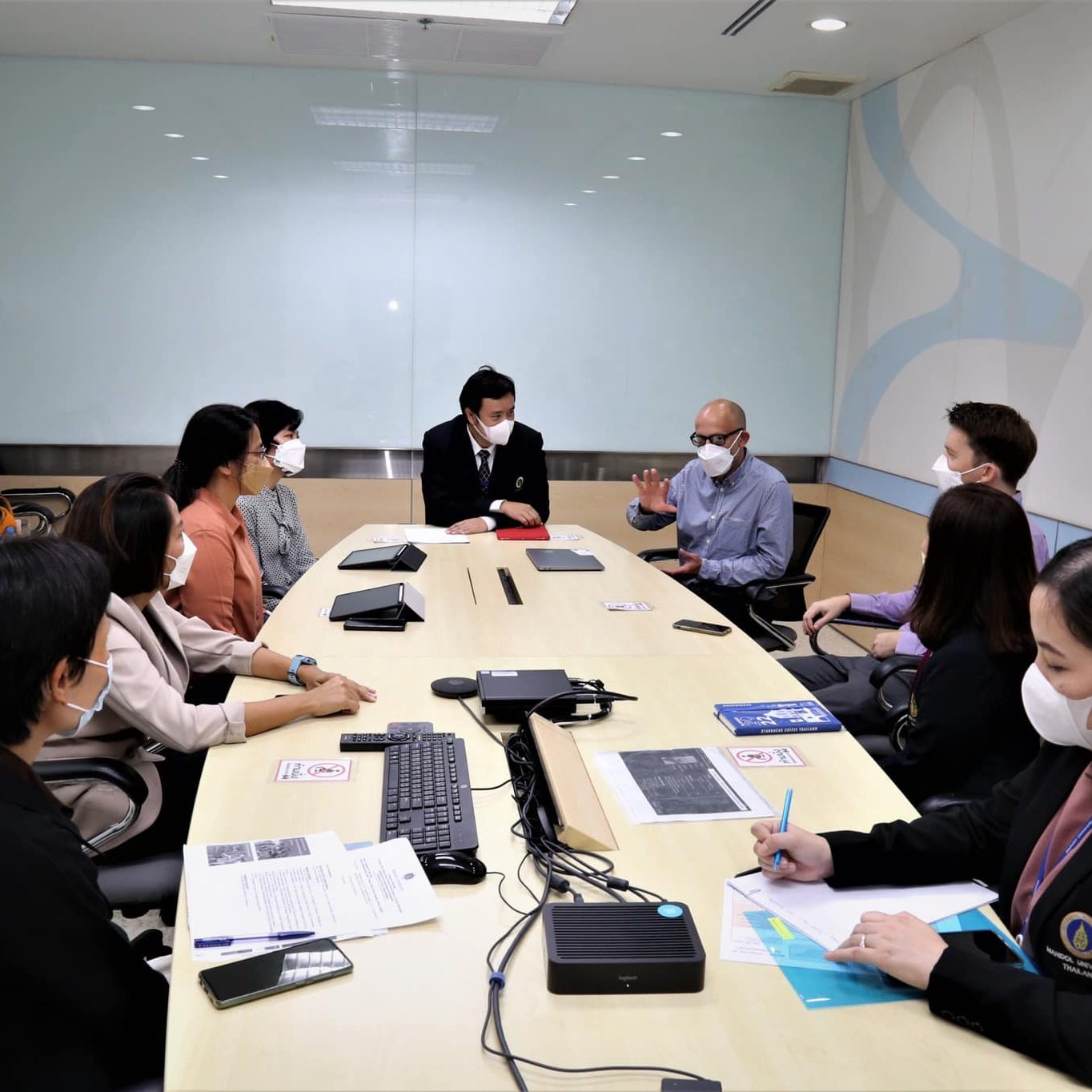 On July 19, 2022, Asst.Prof.Dr.Thatchavee Leelawat, Vice President for Information Technology and Kanchanaburi Campus, along with Dr. Jutamas Keawsuk, head of Division of Environmental Engineering and Disaster Management; Dr. Netiya Karaket, Agricultural Science Program , MUKA faculty members and representatives from Faculty of Environment and Resources Studies, Faculty of Social Sciences and Humanities and Institute for Population and Social Research, Mahidol University participated in a meeting on academic and Social Science research cooperation with Prof. Richard Friend, representative from University of York at 308 Meeting room, Office of the President, Mahidol University.