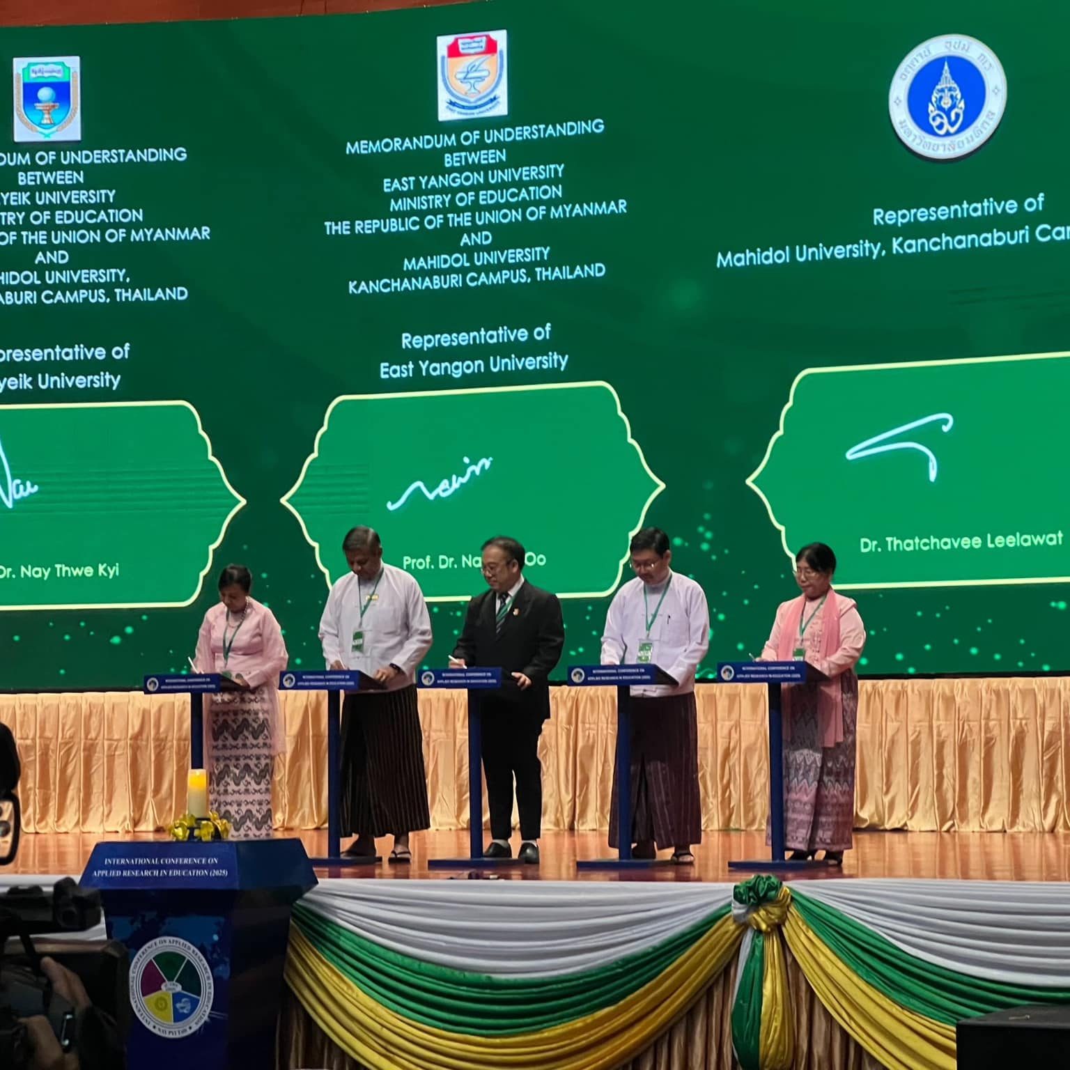 On January 9, 2025, Asst. Prof. Dr. Thatchavee Leelawat, Vice President for Kanchanaburi Campus,Mahidol University, together with Dr. Prinya Putthapiban, Advisor to the Vice President for Kanchanaburi Campus,Mahidol University and Asst. Prof. Dr. Watcharra Chintakovid, Assistant to the Vice President for Kanchanaburi Campus in Education, participated in the signing ceremony of the Memorandum of Understanding (MoU) with the Ministry of Education of the Republic of the Union of Myanmar. The collaboration involves Myeik University, West Yangon University, East Yangon University, and Bago University.