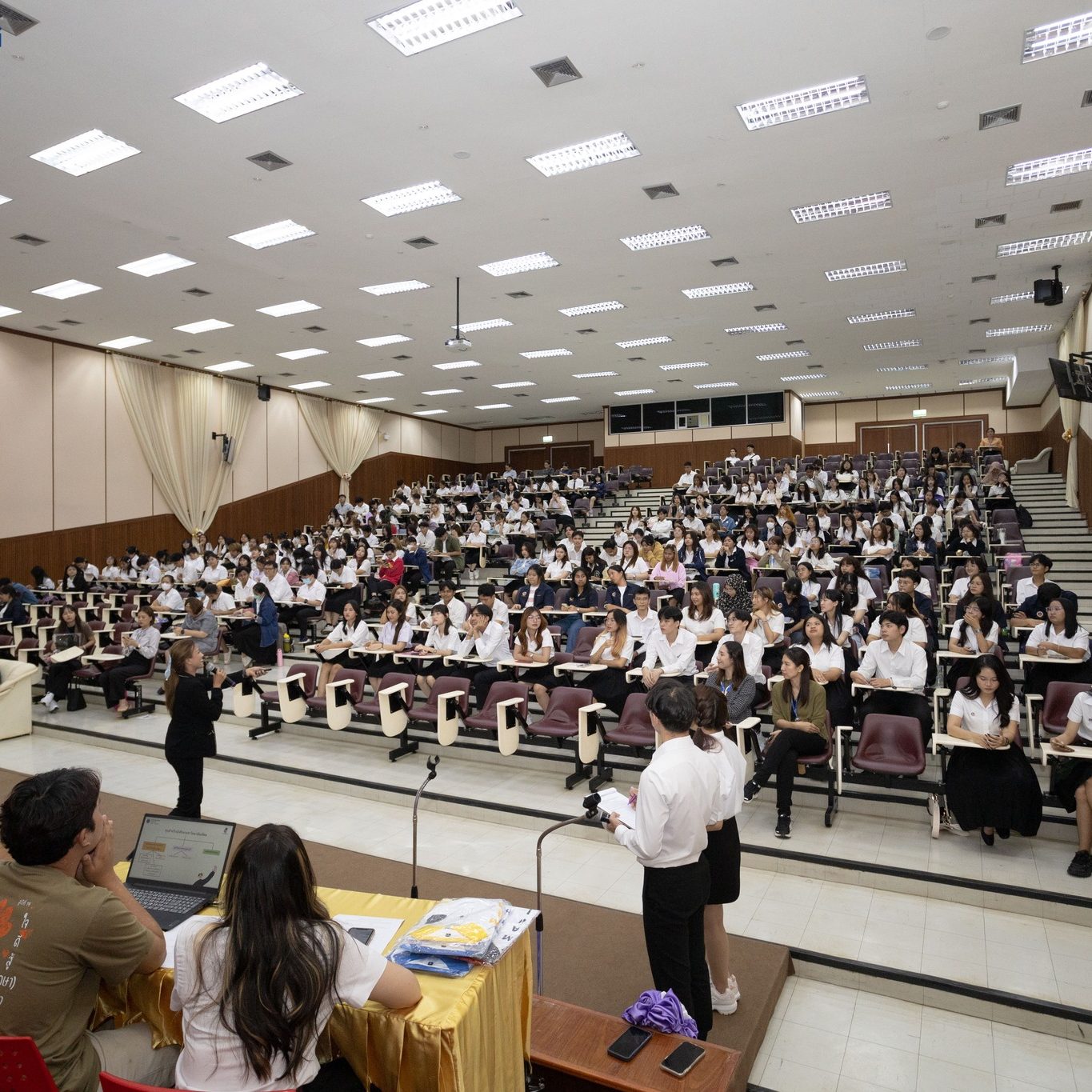 The event also introduced the management team and relevant staff, allowing students to quickly and correctly access services or coordinate tasks according to established procedures. The orientation took place at the Pailin Phutarn Conference Room (L500), which is located in the Lecture Hall of the Kanchanaburi Campus