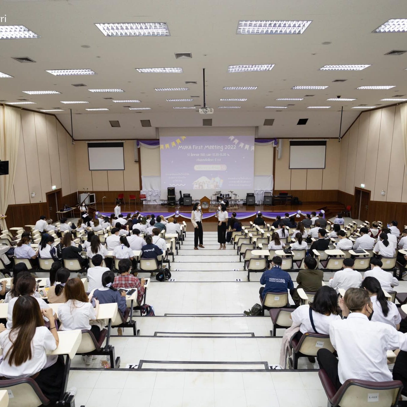 On August 17, 2022, Assoc. Prof. Dr. Kamlang Chumpolbanchorn, Assistant to the President for Kanchanaburi Campus, and the MUKA administrative team, gave welcome speeches to the MUKA First Meeting 2022, an orientation for 2-4-year students of MUKA. The aims of this activity were to introduce MUKA students to living on campus, to give guidelines on life safety and accident prevention, and guidelines on rights to healthcare, including dormitory services and student facilities at Pailinphutharn Meeting Room (L-500), Lecture Hall, Mahidol University, Kanchanaburi Campus.