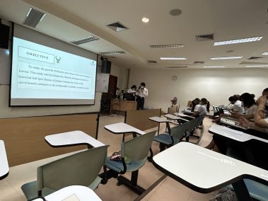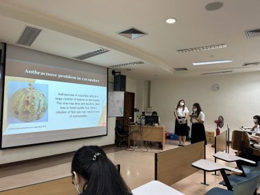 For Seminar II, fourth-year students in the agricultural science program must search for academic papers related to their project of interest. The course focuses on preparing students to understand the principles, methods, and various techniques used in research work that align with their interests. Students are required to demonstrate their ability to retrieve academic data, communicate, analyze, criticize information obtained from various sources, and synthesize the results of their chosen topic. Finally, students must present their work as an oral presentation in English, incorporating scientific information and academic communication. This course provides students with advanced academic skills, including reading, writing, critical thinking, research analysis as well as communication skill.