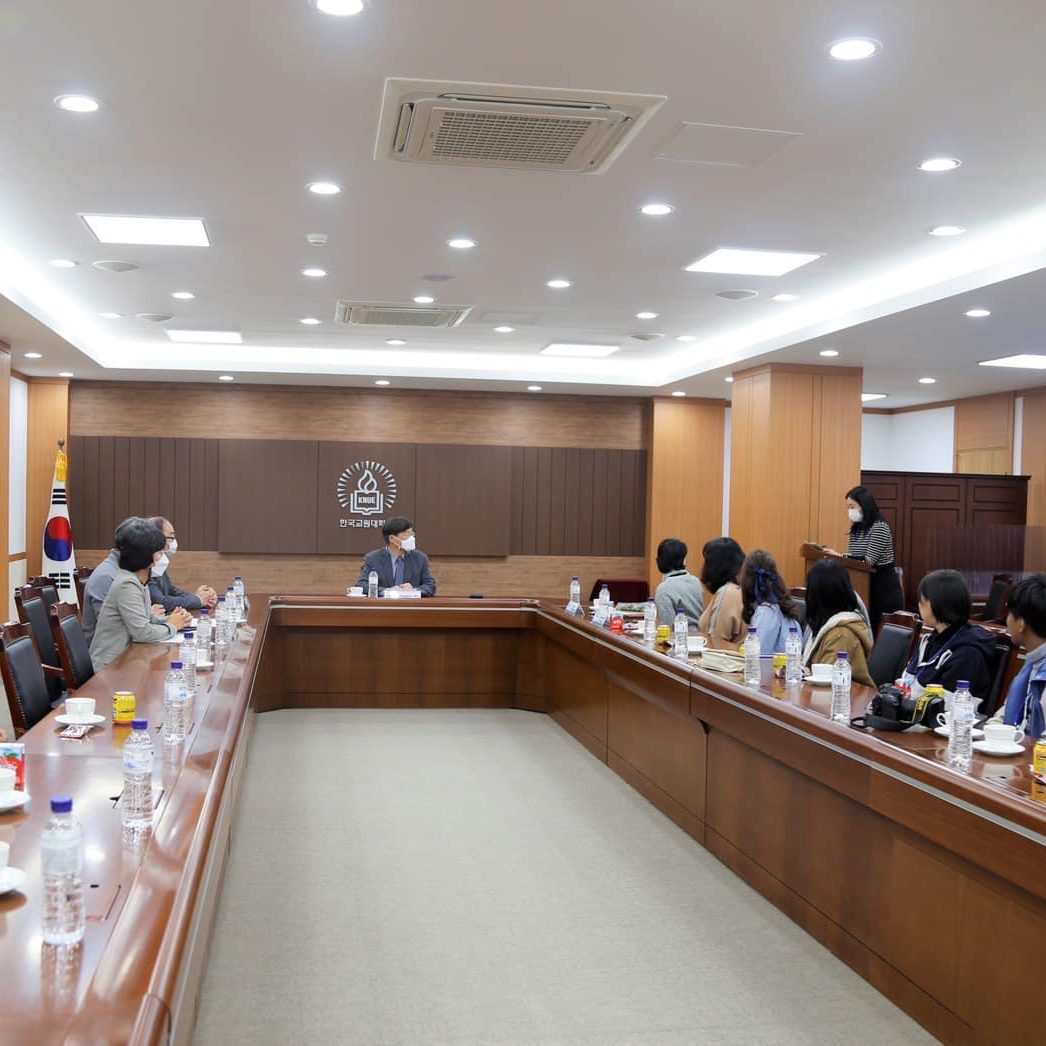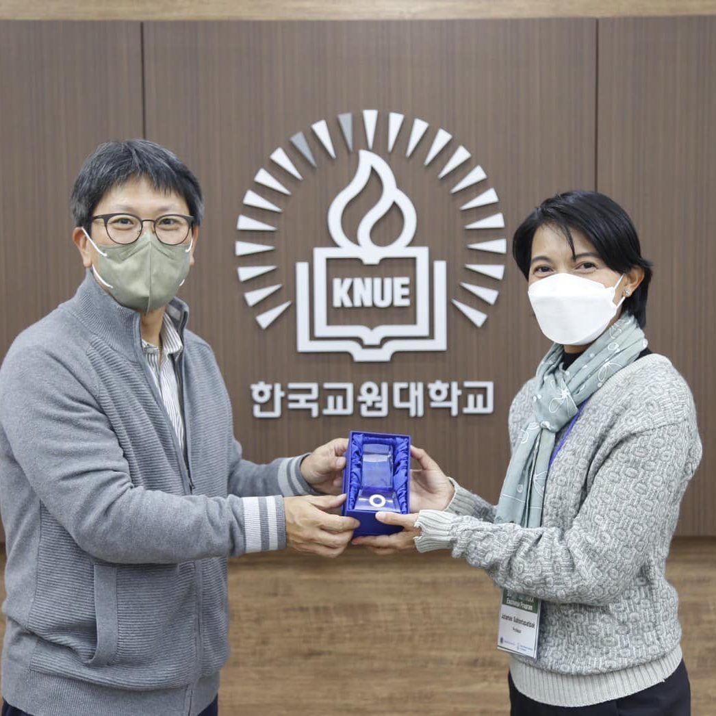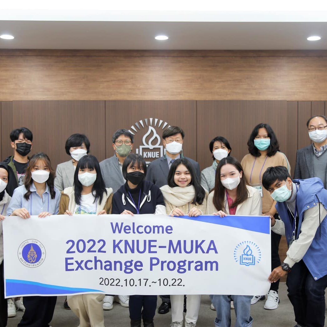 On October 17, 2022, a group of 9 students from MUKA participated in the cultural exchange program “Short-term Student Exchange Program” at Korea National University of Education, Republic of Korea during 17-22 October 2022, with Professor Dr. Chutamas Sukonthapatipak, lecturer from Department of Conservation Biology as an advisor to the students. The group was welcomed by Prof. Jungwoo Kim, President of KNUE, along with Prof.Yongki Lee, Dean of Planning, Prof. Kapsung Kim, GTU team leader, and Ms. Jin A Choi, Section Chief of Department of International Affair, and also gave a warm welcome and wishes for MUKA students to benefit the cultures and knowledge from participating in this exchange program at KNUE.