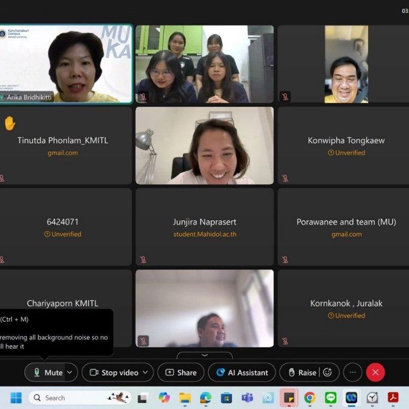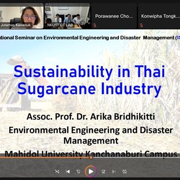 The seminar also featured 7 student presentations from the 4 partner institutions. Representing Mahidol University, students from the Environmental Engineering and Disaster Management Program — Ms. Kornwipa Tongkaew, Ms. Prawanee Chukham, Ms. Chayanit Phiphatphon, and Ms. Suwapitch Watthanarungreung — delivered their presentations online.