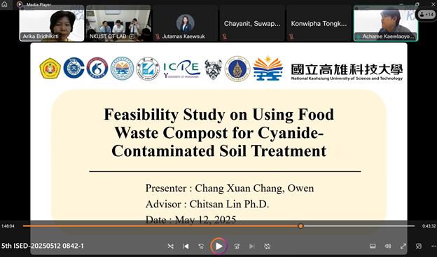 The seminar also featured 7 student presentations from the 4 partner institutions. Representing Mahidol University, students from the Environmental Engineering and Disaster Management Program — Ms. Kornwipa Tongkaew, Ms. Prawanee Chukham, Ms. Chayanit Phiphatphon, and Ms. Suwapitch Watthanarungreung — delivered their presentations online.
