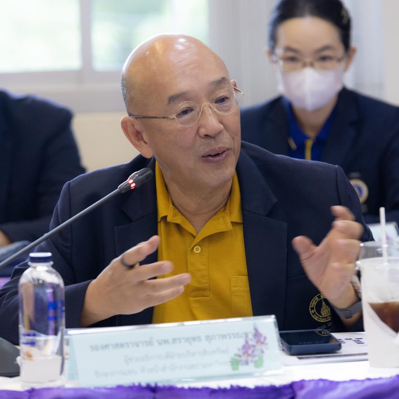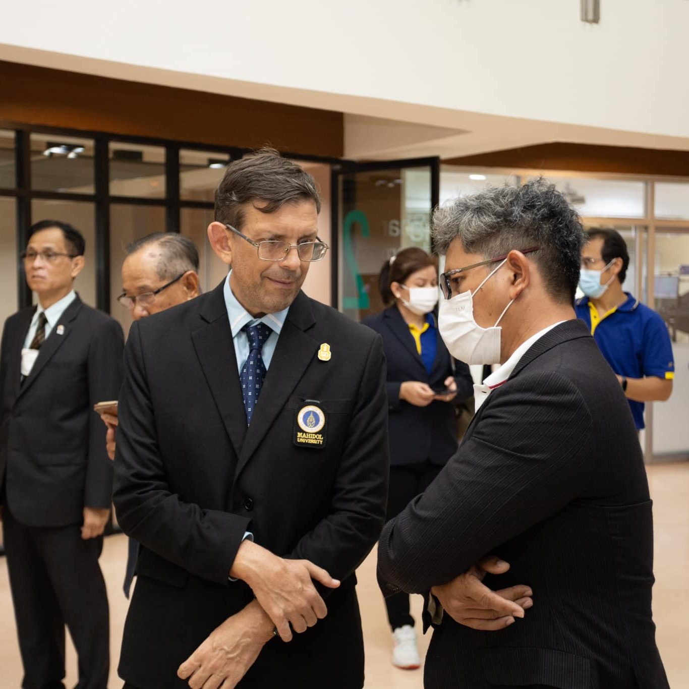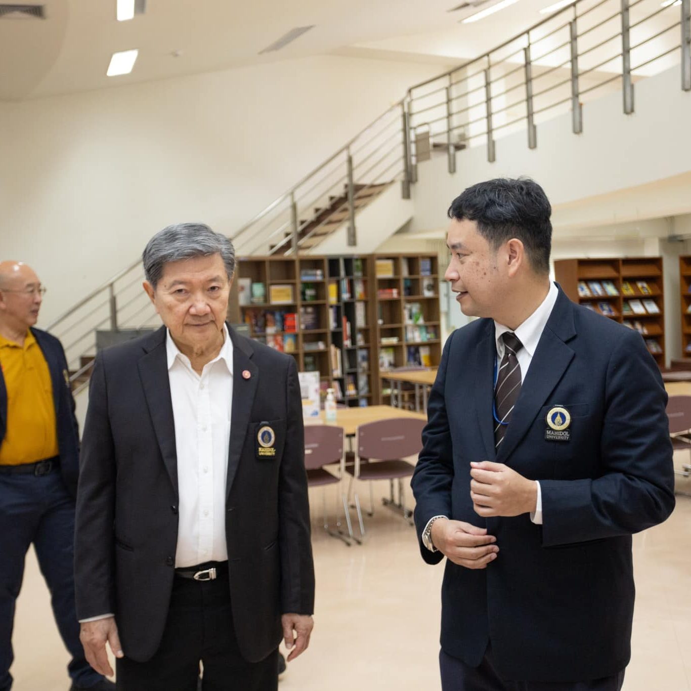 On July 14, 2023, Clinical Prof. Emeritus Piyasakol Sakolsatayadorn, Chair of the University Council, along with the Council Committee of Mahidol University, visited the Kanchanaburi Campus (MUKA). On this occasion, Assist. Prof. Dr. Thatchavee Leelawat, Vice President of Mahidol University for Information Technology and Kanchanaburi Campus, presented the overall operational report, and the administrative section participated in a brainstorming session titled “MU: The Way Forward 2023”.