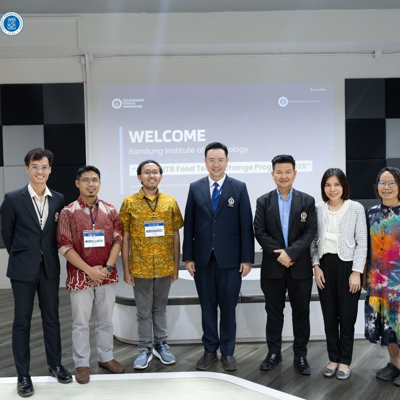 On January 20, 2025, Asst. Prof. Dr. Thatchavee Leelawat, Vice President for Kanchanaburi Campus, Asst. Prof. Dr. Amnat Jarerat, Assistant to the President for Kanchanaburi Campus, along with faculty members from the Food Technology Program, welcomed Dr. Danial Pramudita, Dr. Burhannudin, and exchange students from Bandung Institute of Technology, Republic of Indonesia. The exchange program is being held from January 19-25, 2025 and aims to facilitate international academic knowledge exchange, enhance language skills, provide learning experiences in food technology, and explore industrial learning sites in Kanchanaburi Province.