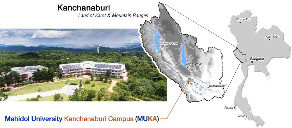 The campus is located in the Triassic dolomitic limestone mountains approximately 2 hours by car from Bangkok. It hosts diverse geological features as well as flora and fauna species of Thailand.