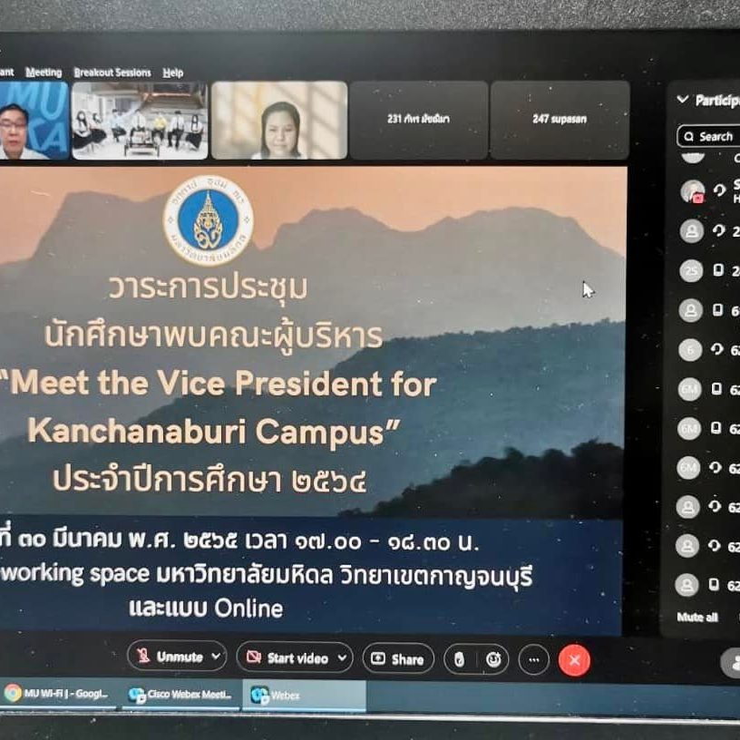 กิจกรรมนักศึกษาพบทีมผู้บริหาร มหาวิทยาลัยมหิดล วิทยาเขตกาญจนบุรี ประจำปีการศึกษา 2564 (ผ่านระบบออนไลน์)