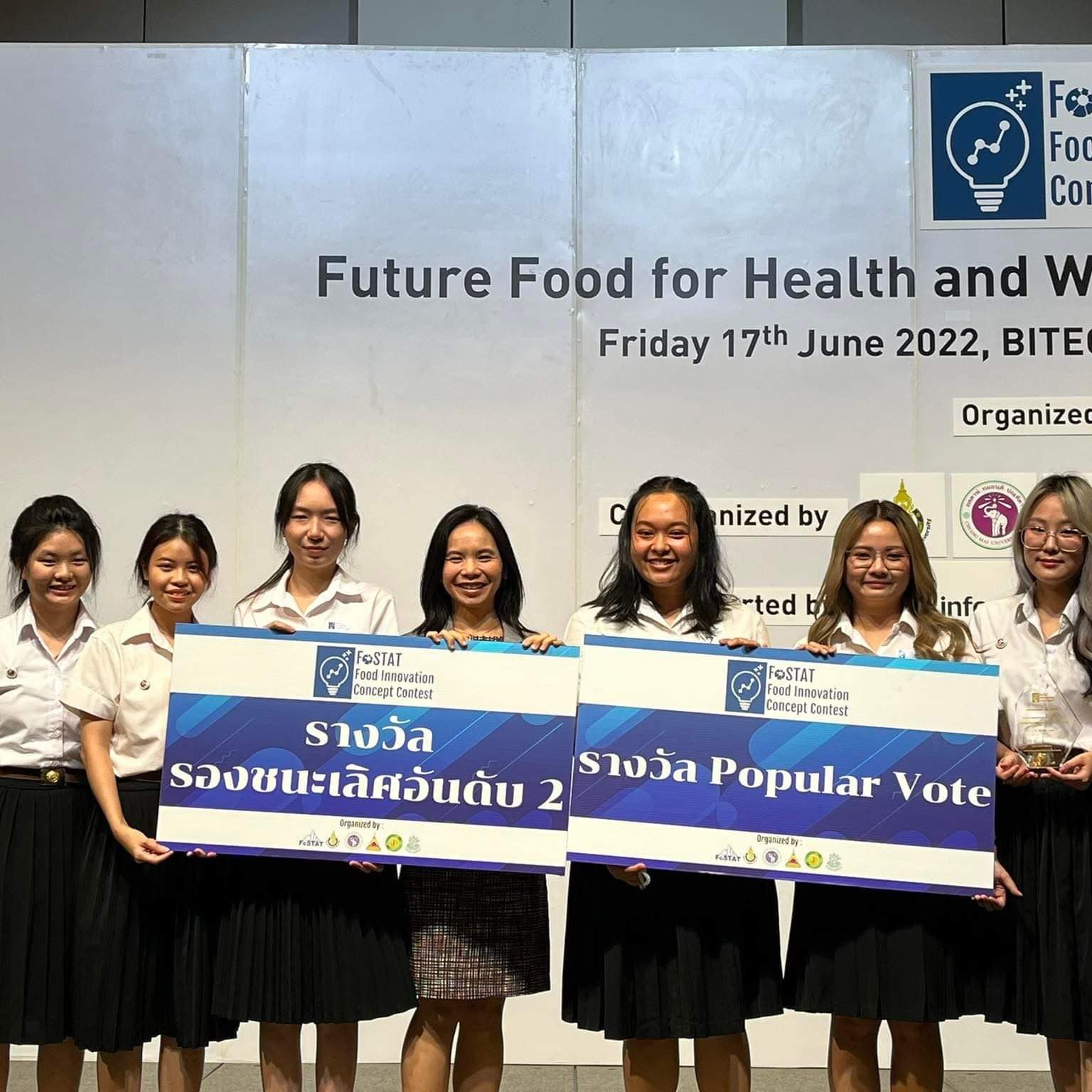 ขอแสดงความยินดีกับนักศึกษาสาขาวิชาเทคโนโลยีการอาหาร และสาขาวิชาบริหารธุรกิจ ที่ได้รับรางวัลชนะเลิศอันดับที่ 2 และรางวัล Popular Vote ในโครงการ Food Innovation Contest 2022