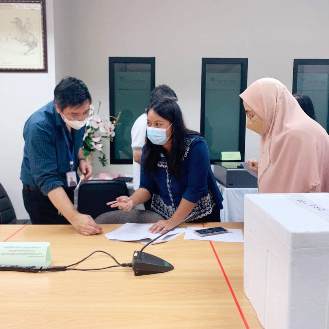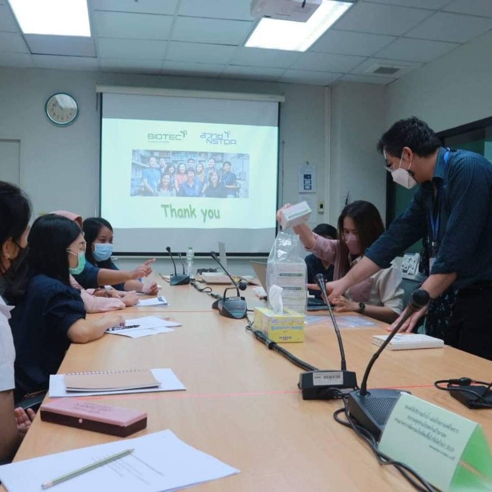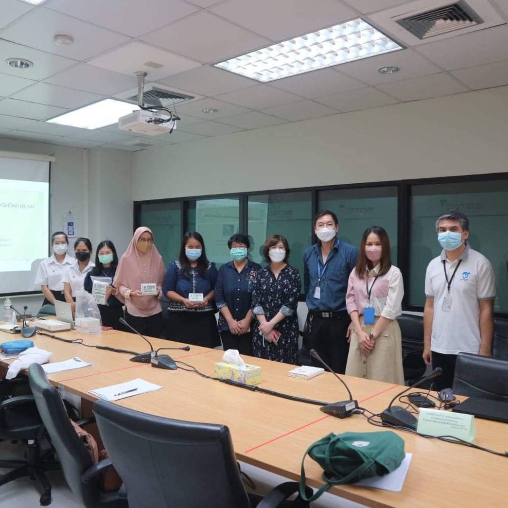 เมื่อวันที่ 19 กรกฎาคม 2565 ดร.ชนาณัฐ แก้วมณี อาจารย์ประจำสาขาวิชาวิทยาศาสตร์การเกษตร มหาวิทยาลัยมหิดล วิทยาเขตกาญจนบุรี และหัวหน้าทีมวิจัยการตรวจหาเชื้อไวรัสสาเหตุโรคใบด่างมันสำปะหลัง ได้นำทีมวิจัยได้แก่ ดร.ประภาพรรณ ซอหะซัน จุฑามาศ หัวหน้าสาขาวิชาวิทยาศาสตร์การเกษตร, ดร.ประไพพิศ สุวิทย์ชยานนท์ อาจารย์ประจำสาขาวิชาวิทยาศาสตร์การเกษตร, นายบุรินทร์ แสงสุข นักวิทยาศาสตร์งานปฏิบัติการวิทยาศาสตร์เพื่อการศึกษา และนักศึกษาวิทยาศาสตร์เกษตรชั้นปีที่ 3 จำนวน 2 คน เข้าประชุมหารือแนวทางทำวิจัยร่วมกับทีมวิจัยมันสำปะหลัง ศูนย์พันธุวิศวกรรมและเทคโนโลยีชีวภาพแห่งชาติ (BIOTEC) และอบรมการใช้เครื่อง Well Scan ซึ่งเป็นเครื่องมือในการตรวจหาเชื้อไวรัสโรคใบด่างมันสำปะหลัง พัฒนาขึ้นโดยนักวิจัยจากศูนย์เทคโนโลยีอิเล็กทรอนิกส์และคอมพิวเตอร์แห่งชาติ (NECTEC) ร่วมกับ BIOTEC