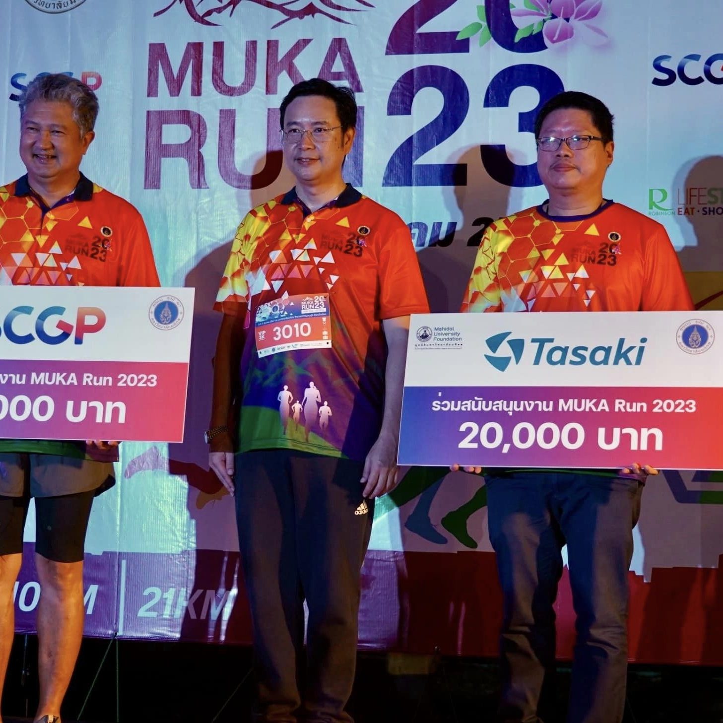 สำหรับการจัดงานครั้งนี้มีหน่วยงานทั้งภาครัฐ ภาคเอกชน ร่วมสนับสนุนการดำเนินการจัดงาน “MUKA Run 2023” อาทิ บริษัท สยามคราฟท์อุตสาหกรรม จำกัด ในกลุ่มธุรกิจ SCGP, บริษัท ไทยทาซากิ เอ็นจิเนียริ่ง จำกัด, มหาวิทยาลัยมหิดล, มูลนิธิมหาวิทยาลัยมหิดล ในพระราชูปถัมภ์ฯ, องค์การบริหารส่วนจังหวัดกาญจนบุรี, บริษัท เอสซีจี แพคเกจจิ้ง จำกัด (มหาชน) หรือ SCGP, บริษัท ไทย ทาซากิ เอ็นจิเนียริ่ง จำกัด, ศูนย์การค้า โรบินสัน ไลฟ์สไตล์ กาญจนบุรี, บริษัท วี อี จำกัด, เครื่องดื่มเกลือแร่สปอนเซอร์, ปลาสวรรค์ตราทาโร และ Royal-D Energy gel จัดขึ้น ณ มหาวิทยาลัยมหิดล วิทยาเขตกาญจนบุรี