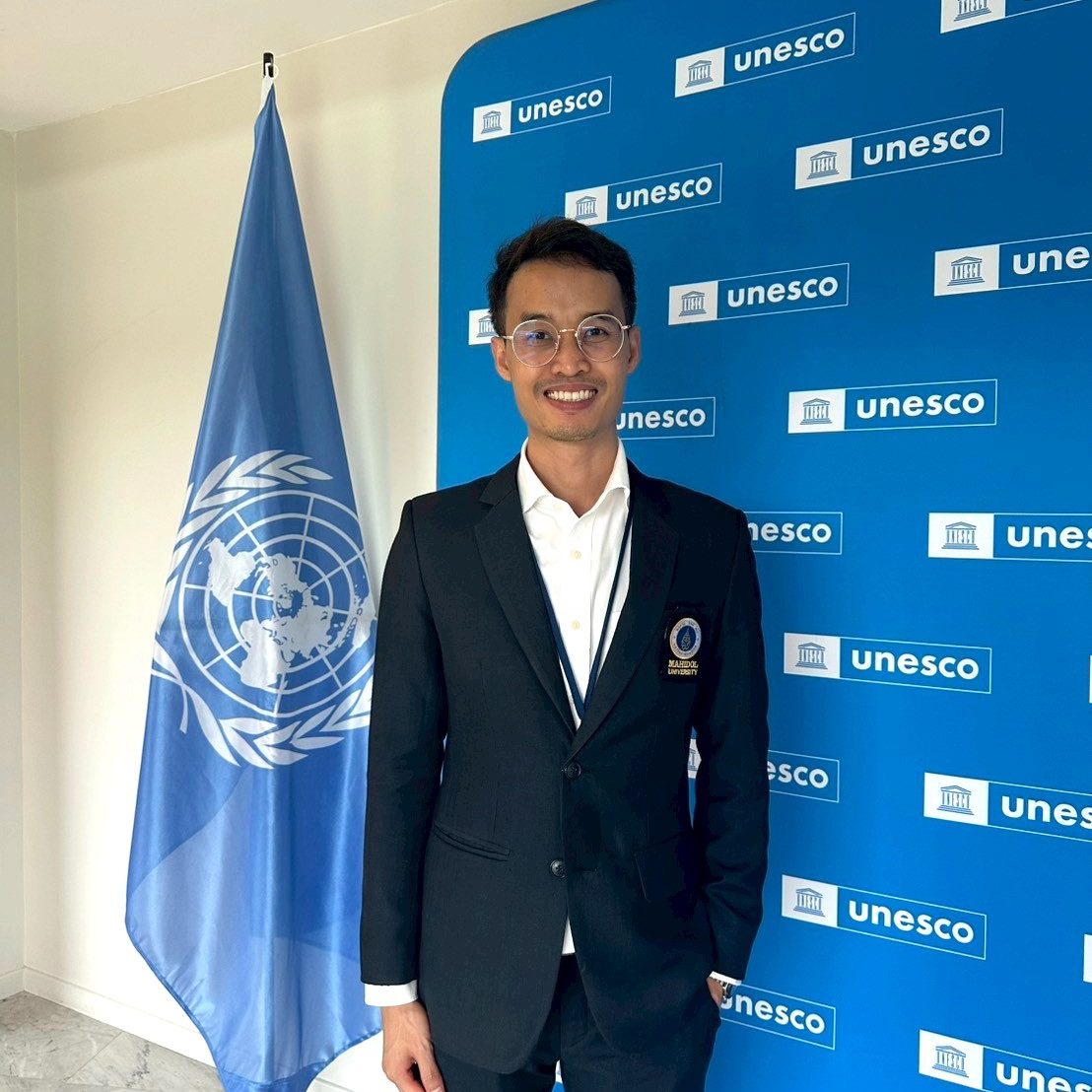 เมื่อวันที่ 5 มิถุนายน 2568 อาจารย์ ดร.ถกล วิทยาธนรัตนา อาจารย์ประจำสาขาวิชาเทคโนโลยีการอาหาร ได้รับเกียรติในการเป็นผู้แทนระดับนานาชาติ ที่ได้รับคัดเลือกให้เข้าร่วมนำเสนอผลงานวิชาการในงาน UNESCO Symposium on ‘Youth Dialogue on the Future along the Silk Roads’ และได้รับเกียรติให้นำเสนอผลงานวิจัยในหัวข้อ “Spices-Alchemy: Decoding the Chemical Composition and Gastronomic Heritage of Silk Road Spices” ซึ่งเป็นส่วนหนึ่งของโครงการวิจัยที่ได้รับทุนสนับสนุนจากโครงการ UNESCO Silk Road Youth Research Grant 2023 มีวัตถุประสงค์เพื่อส่งเสริมการศึกษาและแลกเปลี่ยนองค์ความรู้ด้านวัฒนธรรม วิทยาศาสตร์ และอาหารระหว่างประเทศตามแนวเส้นทางสายไหม ซึ่งในงานครั้งนี้เป็นการแสดงบทบาทของนักวิจัยรุ่นใหม่จากประเทศไทยในการขับเคลื่อนองค์ความรู้ระดับโลกผ่านมุมมองด้านอาหาร วัฒนธรรม และวิทยาศาสตร์ ณ ห้องประชุม 11 สำนักงานใหญ่ องค์การการศึกษา วิทยาศาสตร์ และวัฒนธรรมแห่งสหประชาชาติ (UNESCO Headquarters) กรุงปารีส สาธารณรัฐฝรั่งเศส