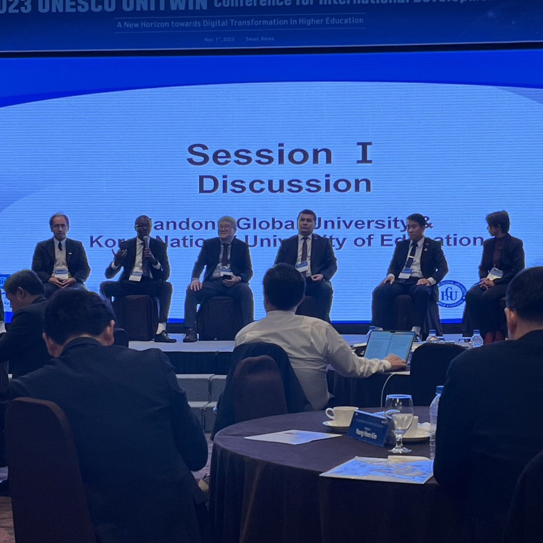 เมื่อวันที่ 1 พฤศจิกายน 2566 อาจารย์ ดร.จุฑามาศ สุคนธปฏิภาค อาจารย์ประจำสาขาวิชาชีววิทยาเชิงอนุรักษ์ ในนามตัวแทนมหาวิทยาลัยในเครือข่ายของ Korea National University of Education (KNUE) ร่วมนำเสนอผลงานวิชาการในการประชุม 2023 UNESCO UNITWIN Conference for International Development “A New Horizon towards Digital Transformation in Higher Education” ณ กรุงโซล สาธารณรัฐเกาหลี โดยการประชุมดังกล่าวเป็นการประชุมเชิงวิชาการเพื่อเผยแพร่ผลงาน แลกเปลี่ยนองค์ความรู้และการปฏิบัติของเครือข่ายสถาบันอุดมศึกษาในโครงการ UNESCO UNITWIN ของประเทศสาธารณรัฐเกาหลี 4 แห่ง ประกอบด้วย Korea National University of Education, Korea National Open University, Sookmyung Women’s University และ Handong Global University ที่ร่วมมือกับ UNESCO ในการเสริมสร้างระบบการศึกษาระดับอุดมศึกษา และส่งเสริมความร่วมมือด้านการอบรมและการวิจัยเพื่อสร้างการพัฒนาที่ยั่งยืน