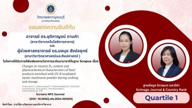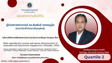 เนื่องในโอกาสได้รับการตีพิมพ์ผลงานวิชาการในวารสารระดับนานาชาติที่ปรากฎในฐานข้อมูล Scopus ตั้งแต่เดือนมิถุนายน – ธันวาคม 2567