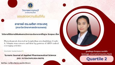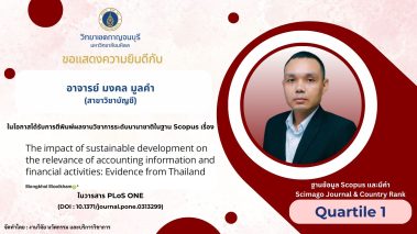 ขอแสดงความยินดีกับนักวิจัย วิทยาเขตกาญจนบุรี เนื่องในโอกาสได้รับการตีพิมพ์ผลงานทางวิชาการในวารสารระดับนานาชาติ
