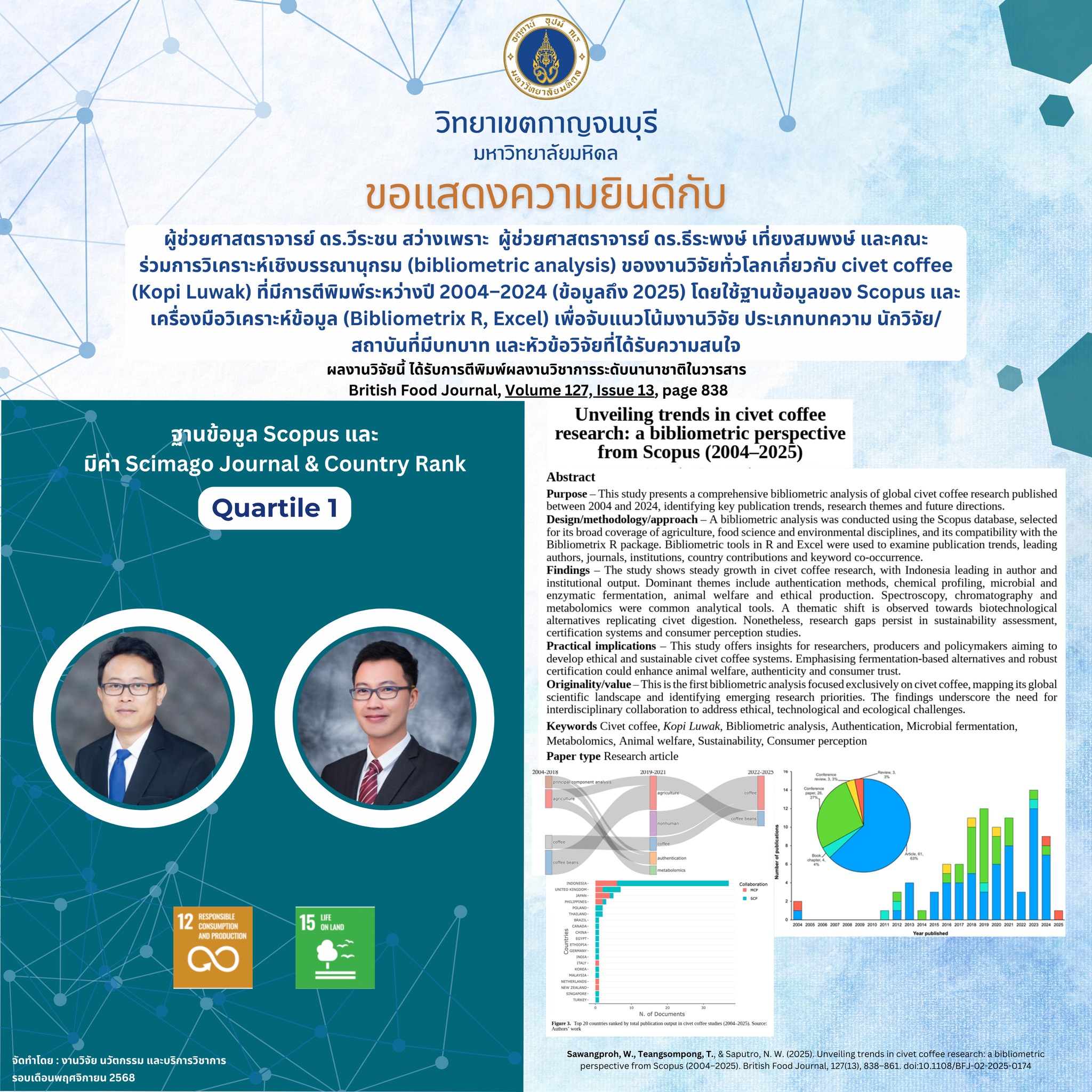 ขอแสดงความยินดีกับนักวิจัย เนื่องในโอกาสได้รับการตีพิมพ์ผลงาน ประจำเดือนพฤศจิกายน 2568 Share this post Share on FacebookShare on Facebook Share on XShare on X Pin itShare on Pinterest Share on LinkedInShare on LinkedIn