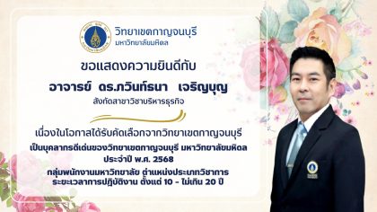ขอแสดงความยินดีกับบุคลากรที่ได้รับคัดเลือกให้เป็นบุคลากรดีเด่นของวิทยาเขตกาญจนบุรี มหาวิทยาลัยมหิดล ประจำปี 2568
