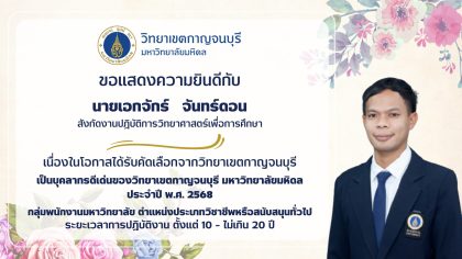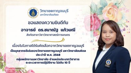 เนื่องในโอกาสได้รับคัดเลือกให้เป็นบุคลากรดีเด่นของวิทยาเขตกาญจนบุรี มหาวิทยาลัยมหิดล ประจำปี 2568