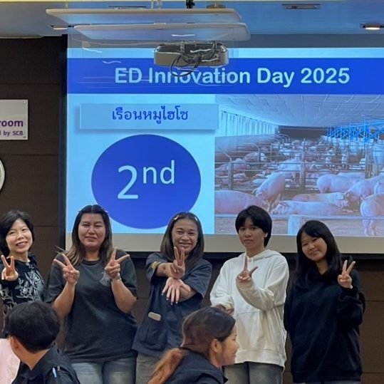 2. รางวัลรองชนะเลิศ นวัตกรรม “เรือนหมูไฮโซ” นำเสนอโดย นางสาวปวีณ์นุช ตันกิตติกุล, นางสาวบุญญิสา เหลียวจันทร, นางสาวธนาภรณ์ ชำนาญกิจ และนางสาวอภิสรา กล้าหาญ
