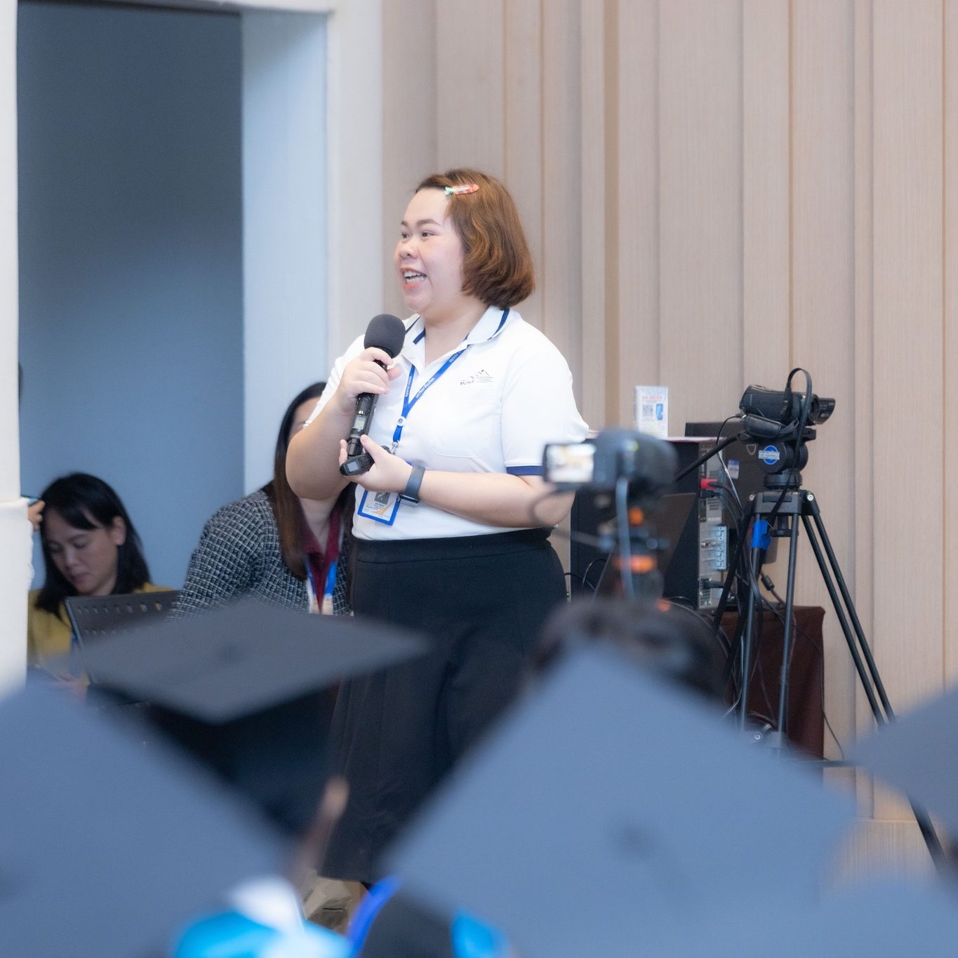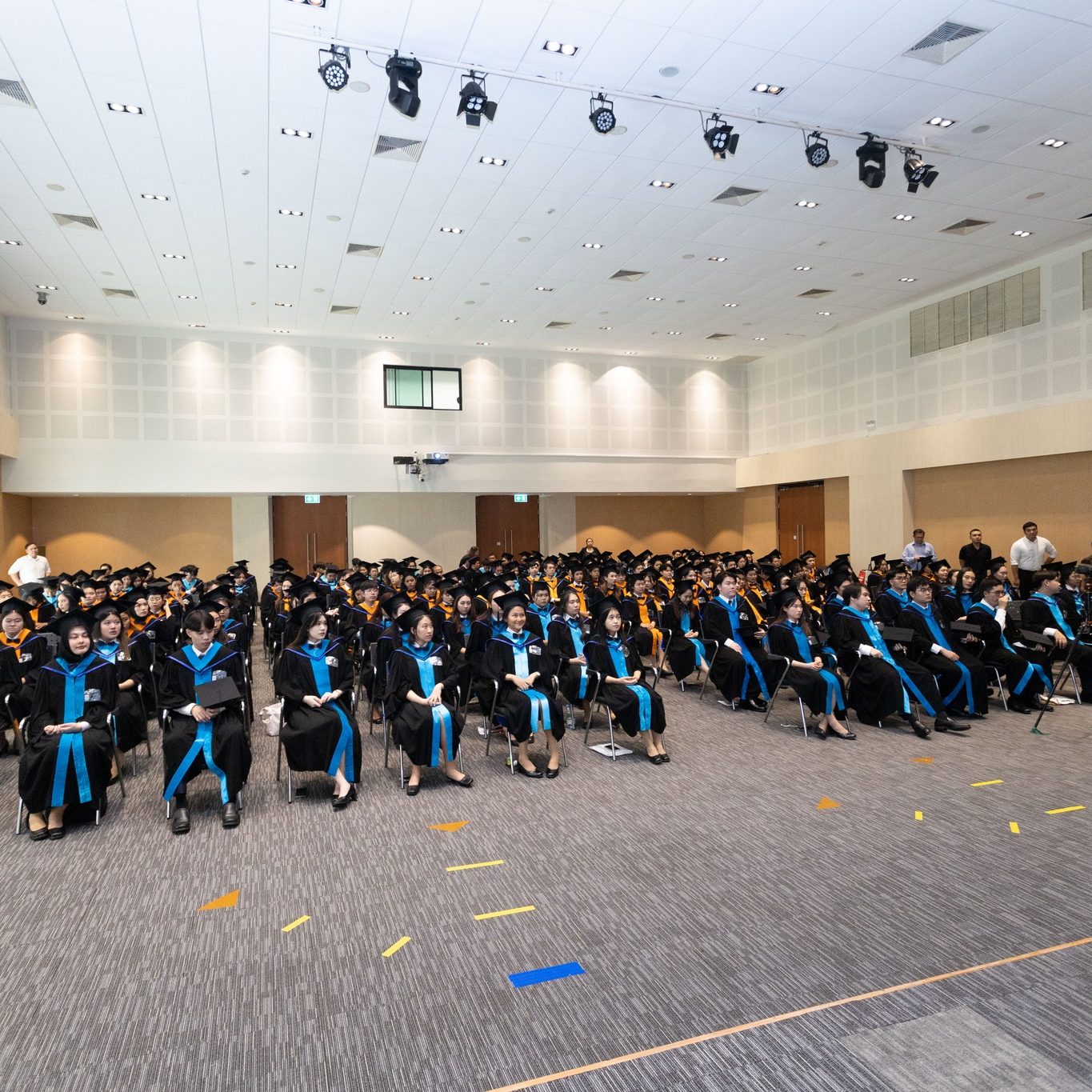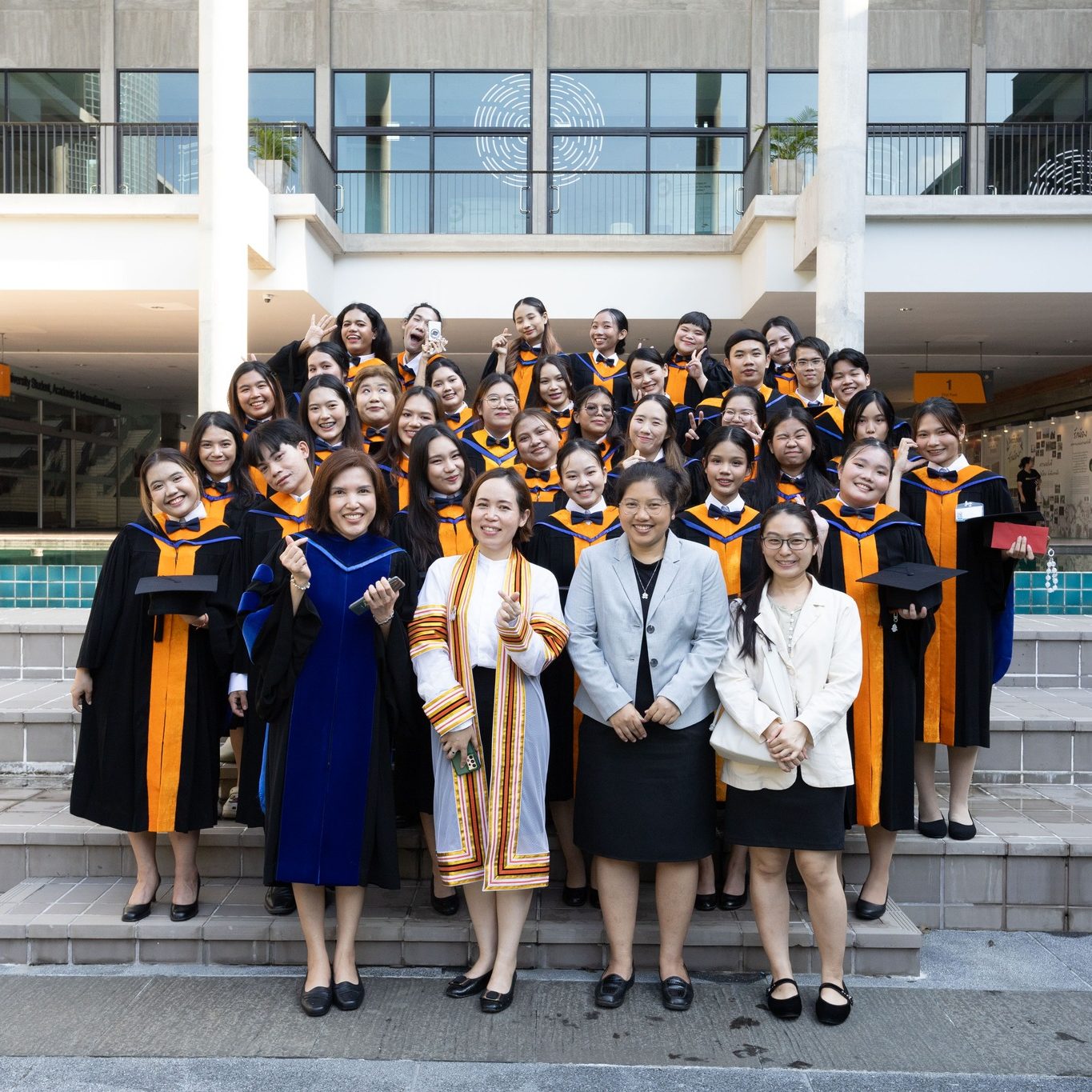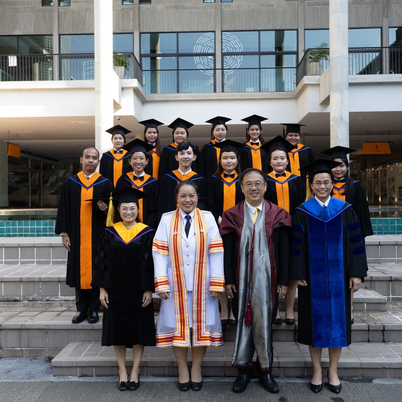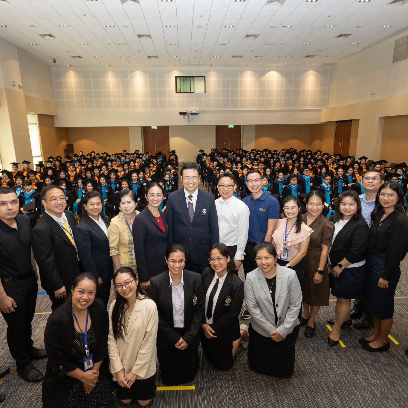 วันที่ 29 กันยายน 2567 ผู้ช่วยศาสตราจารย์ ดร.ธัชวีร์ ลีละวัฒน์ รักษาการแทนรองอธิการบดีฝ่ายวิทยาเขตกาญจนบุรี เป็นประธานและร่วมแสดงความยินดีกับบัณฑิตที่สำเร็จการศึกษาในปีการศึกษา 2566 พร้อมด้วยคณาจารย์ประจำวิทยาเขตกาญจนบุรี ในพิธีฝึกซ้อมรับพระราชทานปริญญาบัตร ประจำปีการศึกษา 2566 (ซ้อมย่อยระดับส่วนงาน) พร้อมถ่ายรูปหมู่ร่วมกับบัณฑิต ณ ศูนย์การเรียนรู้มหิดล มหาวิทยาลัยมหิดล ศาลายา