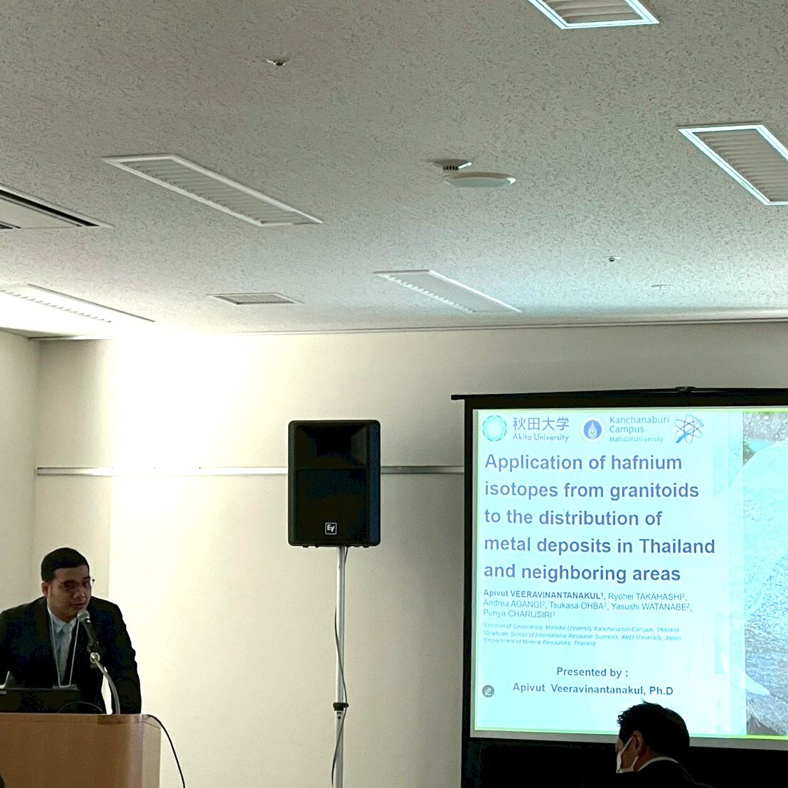 วันที่ 24–25 ตุลาคม 2568 อาจารย์ ดร.อภิวุฒิ วีรวินันทนกุล อาจารย์ประจำสาขาวิชาธรณีศาสตร์ พร้อมด้วยบัณฑิตสาขาวิชาธรณีศาสตร์ ได้ร่วมนำเสนอผลงานวิจัยในการประชุมวิชาการนานาชาติ The 10th International Conference on Materials Engineering for Resources (ICMR2025) ซึ่งจัดโดย The Society of Materials Engineering for Resources of Japan ร่วมกับ Akita University และ Akita Prefectural University โดยมีการนำเสนอผลงานวิจัยในหัวข้อดังนี้