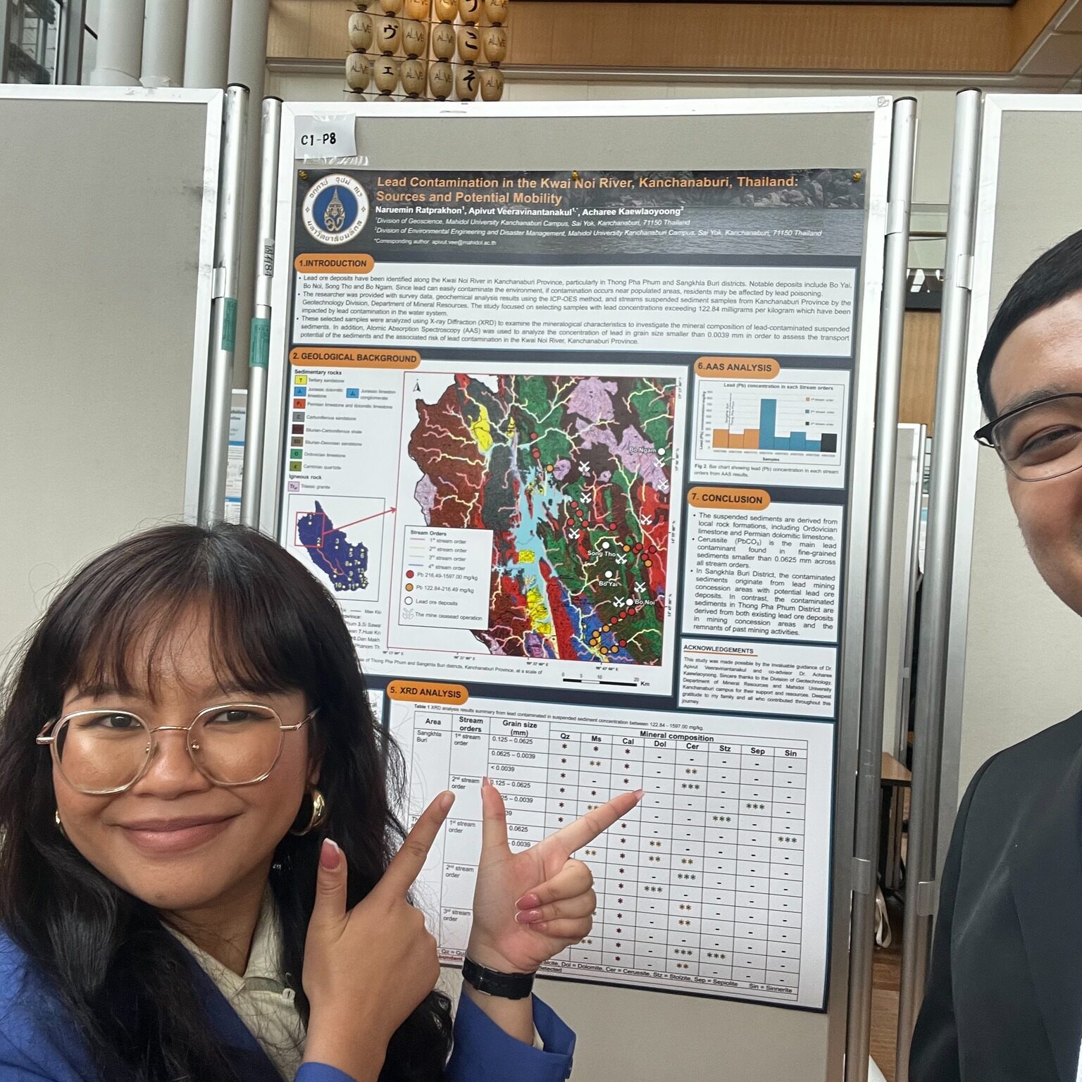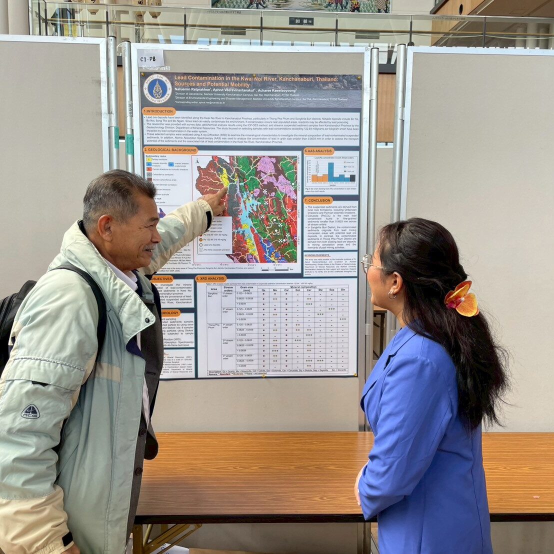 งานวิจัยดังกล่าวอยู่ภายใต้การกำกับดูแลของอาจารย์ ดร.อภิวุฒิ วีรวินันทนกุล อาจารย์ประจำสาขาวิชาธรณีศาสตร์ และอาจารย์ ดร.อาจารี แก้วเหล่ายูง อาจารย์ประจำสาขาวิชาวิศวกรรมสิ่งแวดล้อมและการจัดการภัยพิบัติ อาจารย์ที่ปรึกษาร่วม (Co-Advisor) โดยเป็นงานวิจัยแบบบูรณาการข้ามศาสตร์ ระหว่างสองสาขาวิชา เพื่อศึกษาประเด็นปัญหาสิ่งแวดล้อมจากมุมมองทางธรณีศาสตร์และวิศวกรรมสิ่งแวดล้อม การประชุมจัดขึ้น ณ Akita Community-based Center “ALVE” จังหวัดอะคิตะ ประเทศญี่ปุ่น