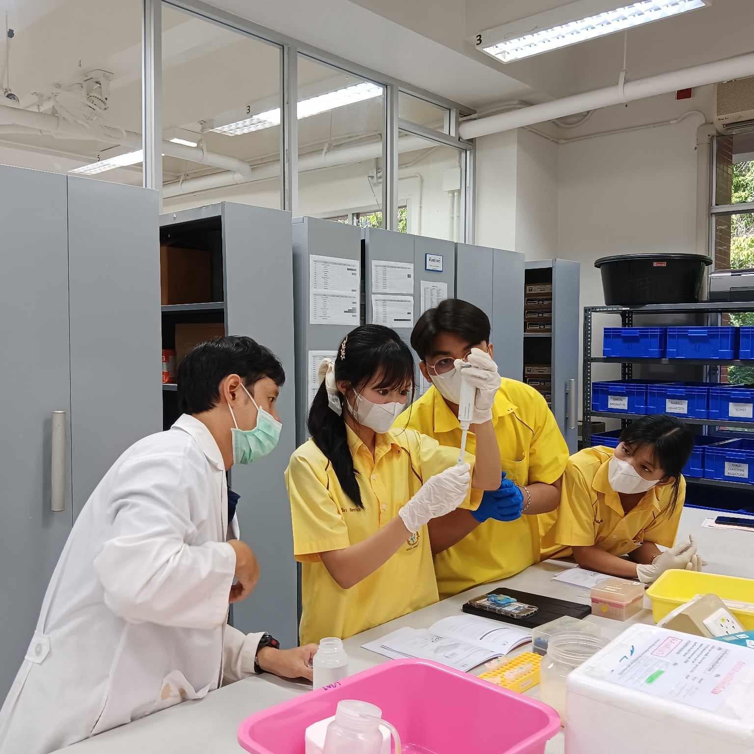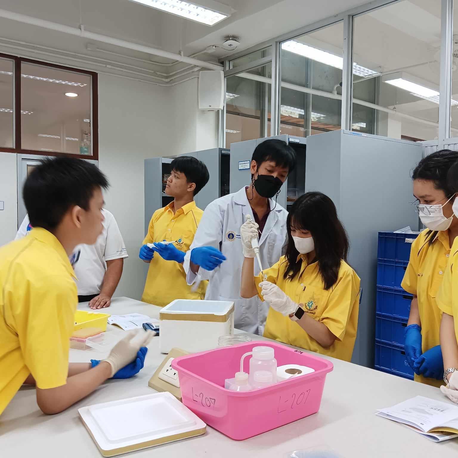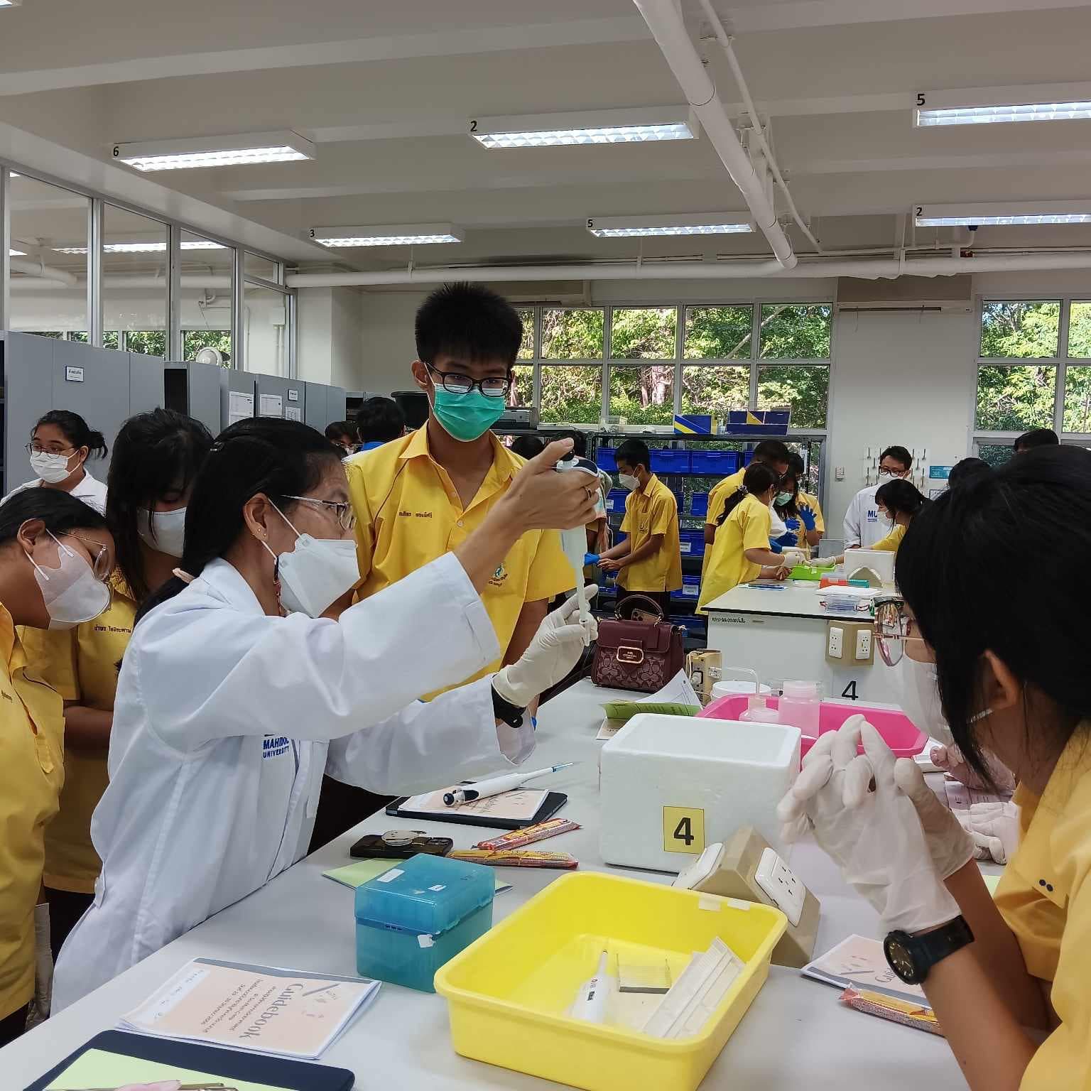 เมื่อวันที่ 29 มิถุนายน 2566 คณาจารย์ นักวิทยาศาสตร์ และนักศึกษา หลักสูตรวิทยาศาสตรบัณฑิต สาขาวิชาชีววิทยาเชิงอนุรักษ์ มหาวิทยาลัยมหิดล วิทยาเขตกาญจนบุรี จัดกิจกรรมบริการวิชาการค่าย IP- Sci-Math Camp ให้กับนักเรียนโครงการห้องเรียนพิเศษวิทยาศาสตร์-คณิตศาสตร์ (Intensive Program: IP) ระดับมัธยมศึกษาปีที่ 5 โรงเรียนนวมินทราชินูทิศ หอวัง จังหวัดนนทบุรี โดยมีวัตถุประสงค์เพื่อให้นักเรียนได้เรียนรู้และฝึกปฏิบัติการใช้เครื่องมือเพื่อศึกษาเทคนิคทางชีวโมเลกุล (DNA Technology) เข้าใจกลไกการทำงานของเอนไซม์ตัดจำเพาะ ฝึกวิเคราะห์การแยก DNA ตามขนาดและแนวทางการประยุกต์ใช้เทคโนโลยีด้านต่างๆ นอกจากนี้ ยังมีกิจกรรมศึกษาแมลงกลางคืน โดยอาจารย์ไพพรรณ แพเจริญ หัวหน้าสาขาวิชาชีววิทยาเชิงอนุรักษ์ และคุณธนภัทร กลับชุ่ม นักวิทยาศาสตร์ เป็นวิทยากรให้ความรู้ เพื่อให้นักเรียนได้เรียนรู้เทคนิคการศึกษาแมลงเบื้องต้น ณ มหาวิทยาลัยมหิดล วิทยาเขตกาญจนบุรี