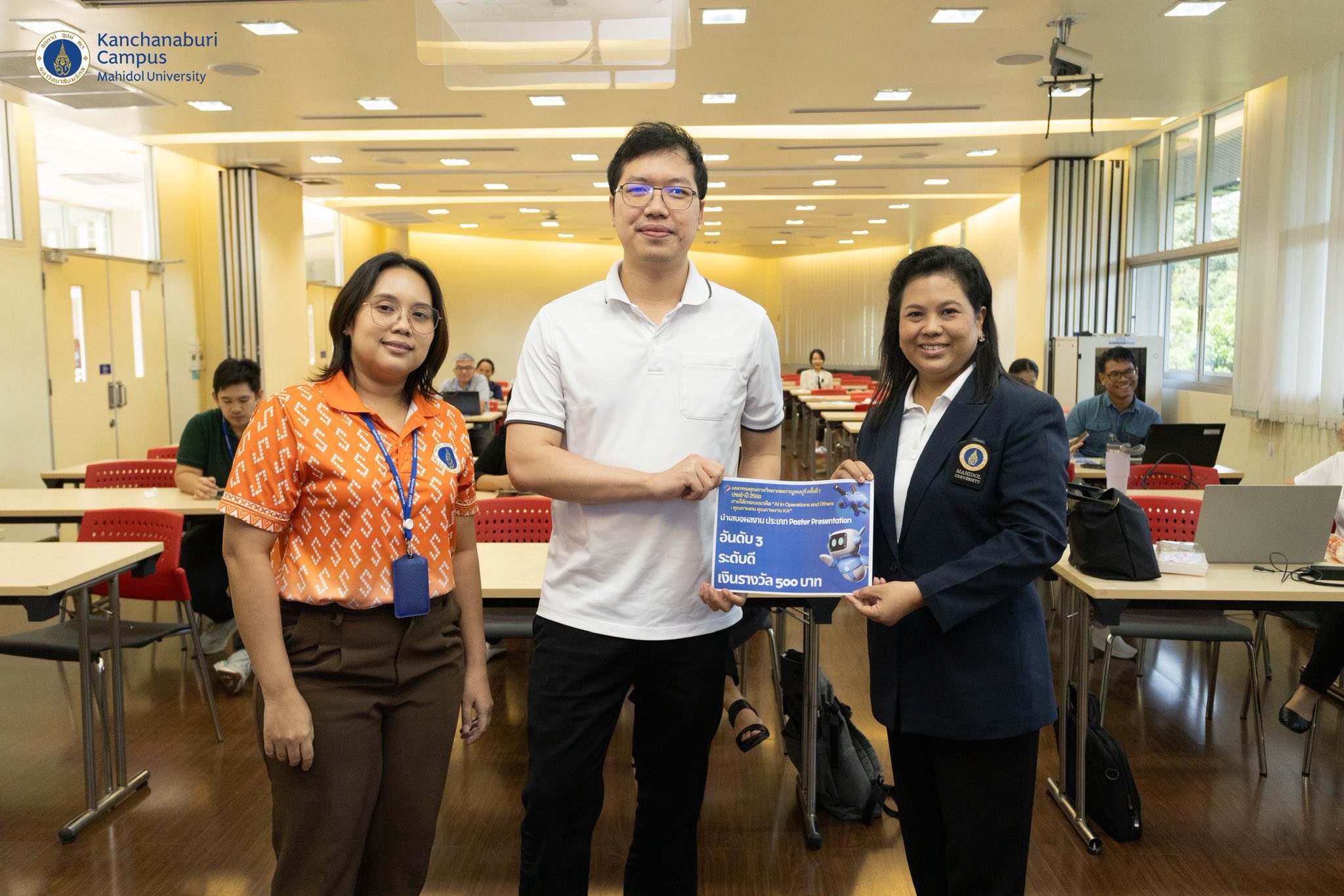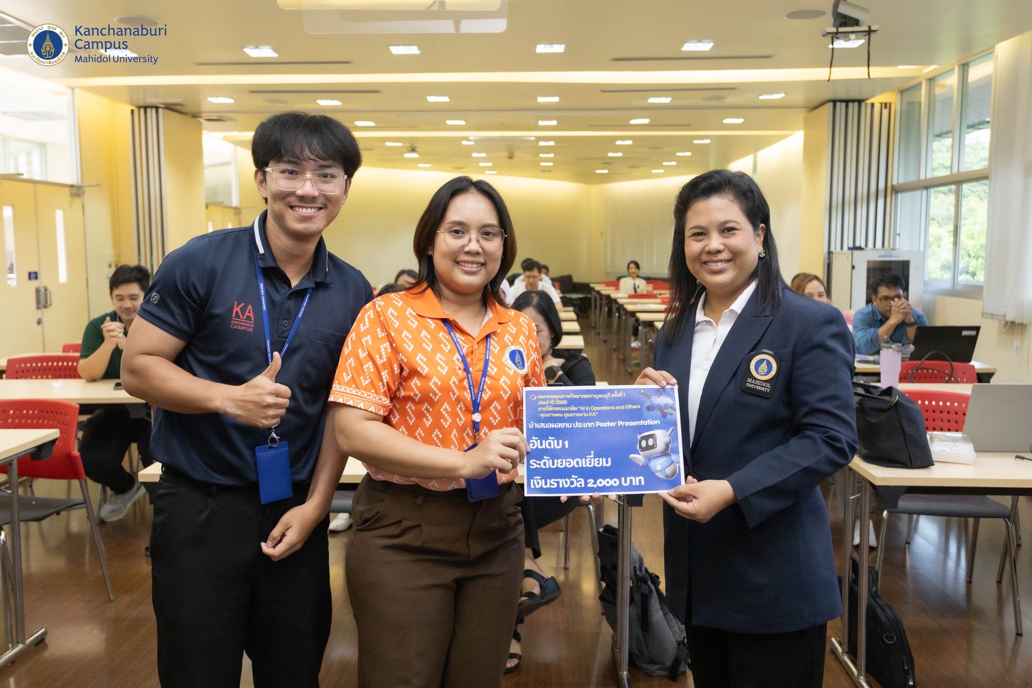 วันที่ 13 สิงหาคม 2568 ผู้ช่วยศาสตราจารย์ ดร.วราภรณ์ ตรีพรหม ผู้ช่วยรองอธิการบดีฝ่ายวิทยาเขตกาญจนบุรีด้านแผนและวิจัย เป็นประธานเปิดงาน และมอบรางวัลการนำเสนอผลงานให้กับบุคลากร ในการจัดงานมหกรรมคุณภาพวิทยาเขตกาญจนบุรี ครั้งที่ 1 ประจำปี 2568 ภายใต้หัวข้อ “AI in Operations and Others : คุณภาพคน คุณภาพงาน KA” โดยมีบุคลากรวิทยาเขตกาญจนบุรีร่วมจัดส่งผลงาน และมีบุคลากรที่ได้รับคัดเลือกรับรางวัลประเภทต่างๆ ดังนี้