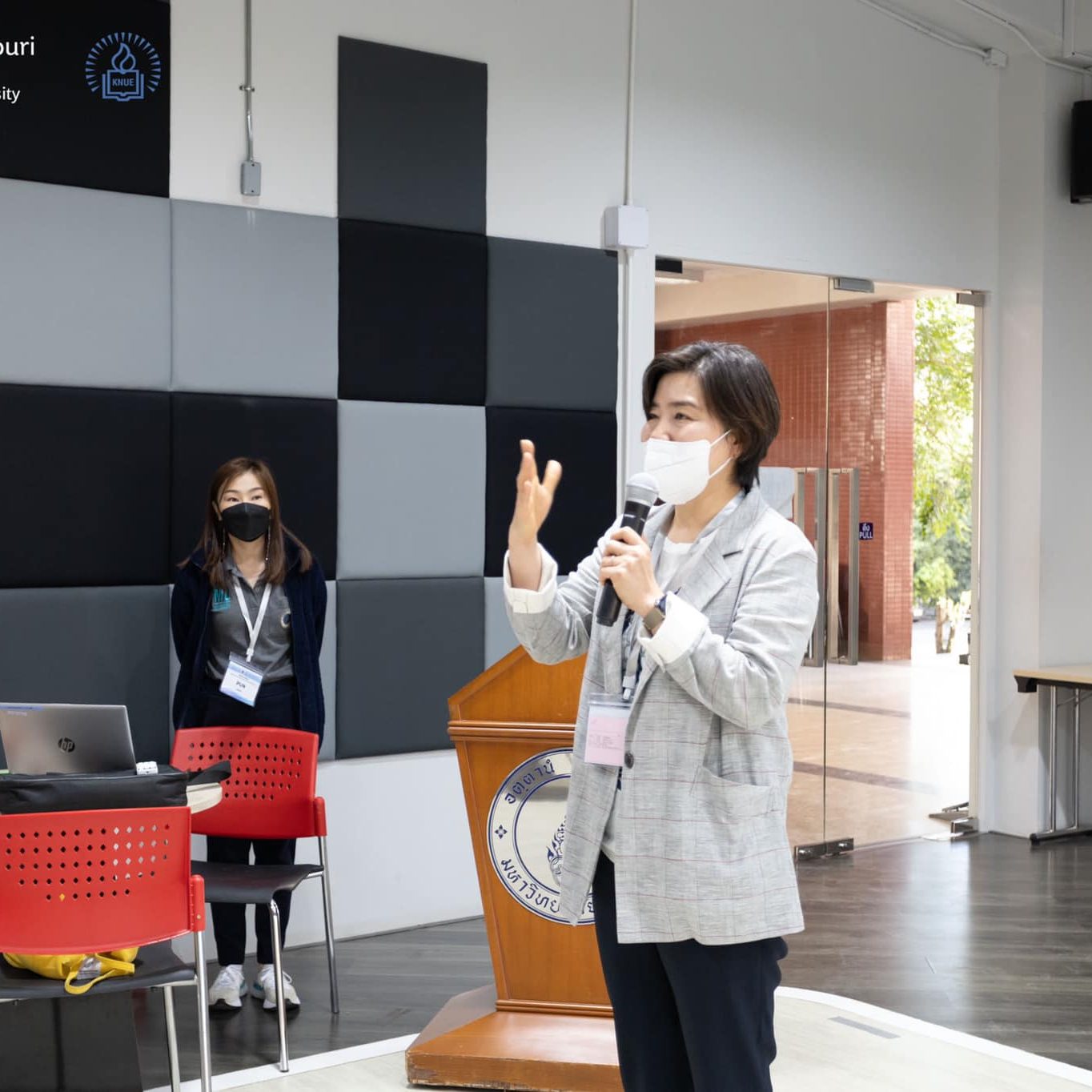 ผู้ช่วยศาสตราจารย์ ดร.ธัชวีร์ ลีละวัฒน์ รองอธิการบดีฝ่ายสารสนเทศและวิทยาเขตกาญจนบุรี พร้อมด้วยอาจารย์ ดร.อำนาจ เจรีรัตน์ ผู้ช่วยรองอธิการบดีฝ่ายวิทยาเขตกาญจนบุรี (ด้านวิชาการและวิเทศสัมพันธ์) กล่าวต้อนรับคณะอาจารย์และนักศึกษา Korea National University of Education (KNUE) สาธารณรัฐเกาหลี เพื่อร่วมกิจกรรมแลกเปลี่ยนนักศึกษา ณ วิทยาเขตกาญจนบุรี ในระหว่างวันที่ 29 มกราคมถึงวันที่ 4 กุมภาพันธ์ 2566