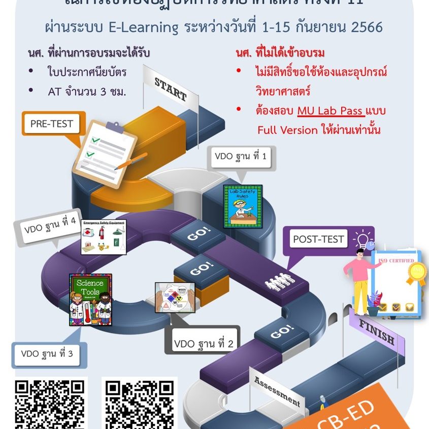 งานปฏิบัติการวิทยาศาสตร์เพื่อการศึกษา ประชาสัมพันธ์โครงการอบรมความปลอดภัยในการใช้ห้องปฏิบัติการวิทยาศาสตร์ ครั้งที่ 11 สำหรับนักศึกษาหลักสูตร วิทยาศาสตรบัณฑิตและวิศวกรรมศาสตรบัณฑิต ปีที่ 2 และปีที่ 4 ผ่านระบบ KA e-Leanring